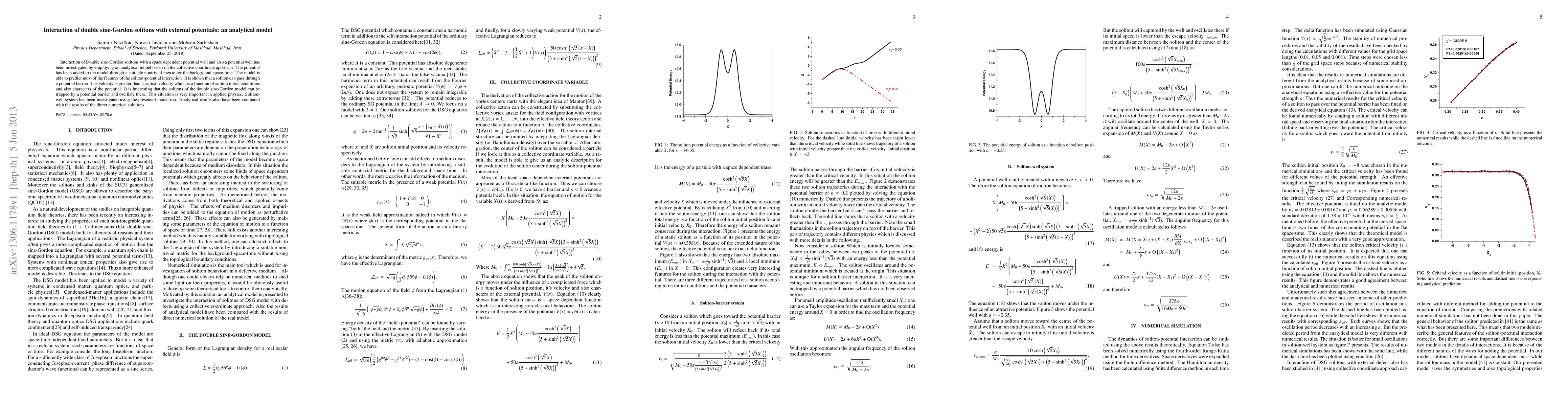 This paper investigates the interaction of double sine-Gordon solitons with external potentials using an analytical model based on the collective coordinate approach. The study reveals that solitons can pass through potential barriers if their velocity exceeds a critical threshold, and they can also be trapped and oscillate within potential wells, with analytical results corroborated by numerical simulations.