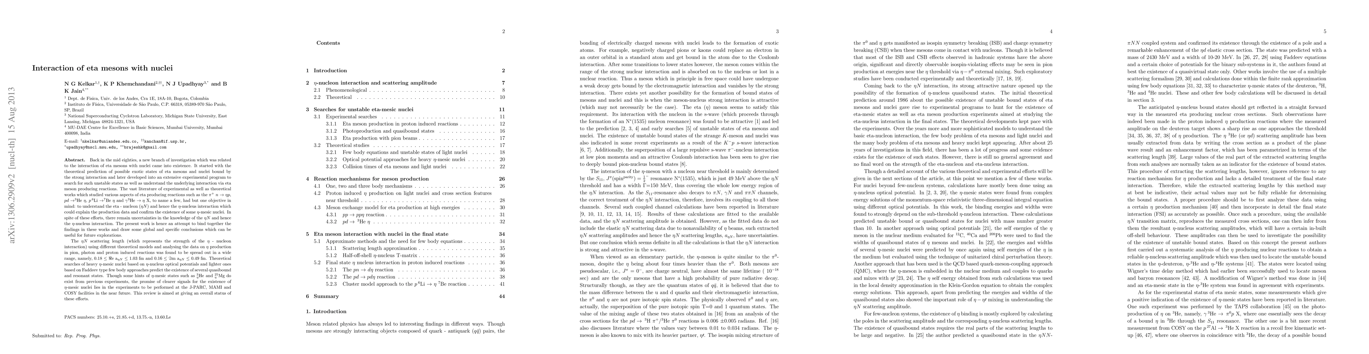 This paper reviews the extensive research on the interaction of eta mesons with nuclei, focusing on theoretical predictions and experimental investigations of exotic eta meson-nucleus bound states. Despite numerous studies, uncertainties in the eta-nucleon interaction persist, highlighting the need for further exploration.