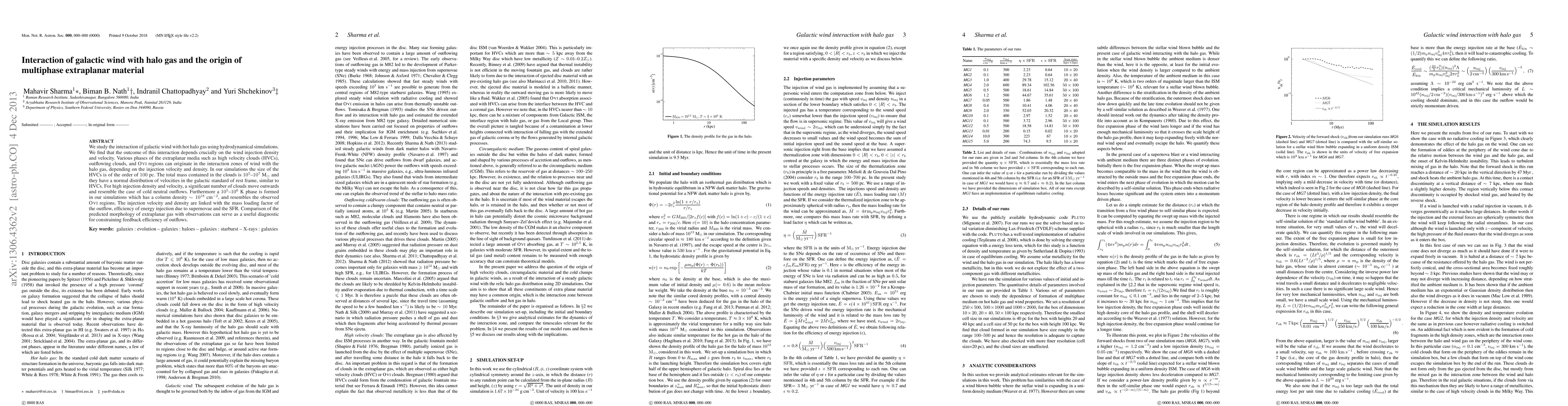 We study the interaction of galactic wind with hot halo gas using hydrodynamical simulations. We find that the outcome of this interaction depends crucially on the wind injection density and velocity. Various phases of the extraplanar media such as high velocity clouds (HVCs), outflowing clouds, and OVI regions can originate in the interaction zones of wind with the halo gas, depending on the injection velocity and density. In our simulations the size of the HVCs is of the order of 100 pc. The total mass contained in the clouds is 10^5 -- 10^7 M_sun and they have a normal distribution of velocities in the galactic standard of rest frame, similar to HVCs. For high injection density and velocity, a significant number of clouds move outwards and resemble the case of cold neutral outflows. Furthermore a 10^5 -- 10^6 K phase is formed in our simulations which has a column density ~ 10^{18} cm^{-2}, and resembles the observed OVI regions. The injection velocity and density are linked with the mass loading factor of the outflow, efficiency of energy injection due to supernovae and the SFR. Comparison of the predicted morphology of extraplanar gas with observations can serve as a useful diagnostic for constraining feedback efficiency of outflows.