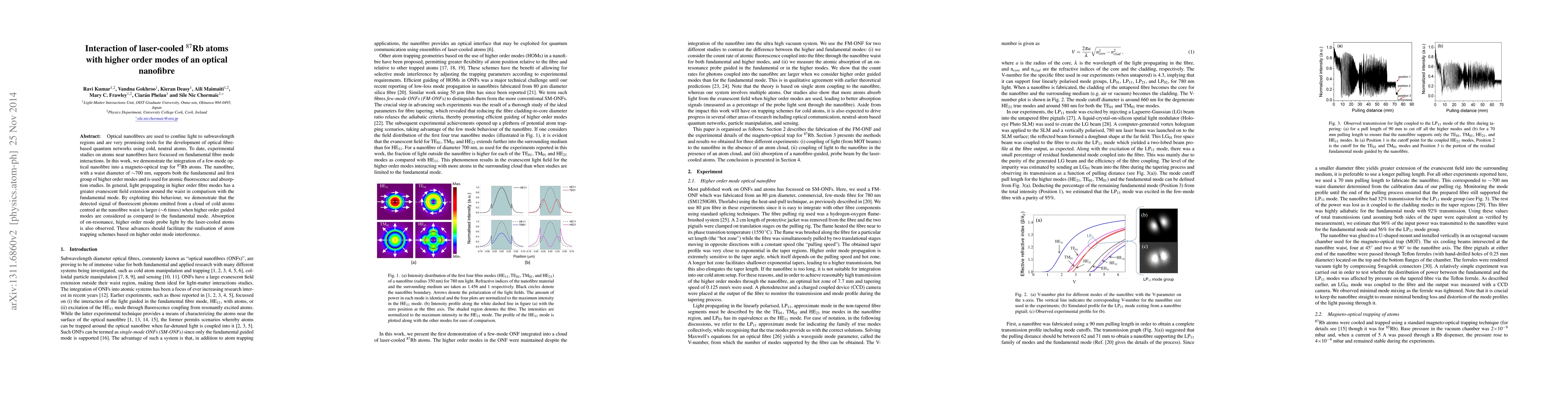 This paper demonstrates the use of a few-mode optical nanofibre to enhance interactions between laser-cooled $^{87}$Rb atoms and higher order modes, showing a $\sim$6 times increase in fluorescent photon detection compared to fundamental modes, which could advance atom trapping schemes.