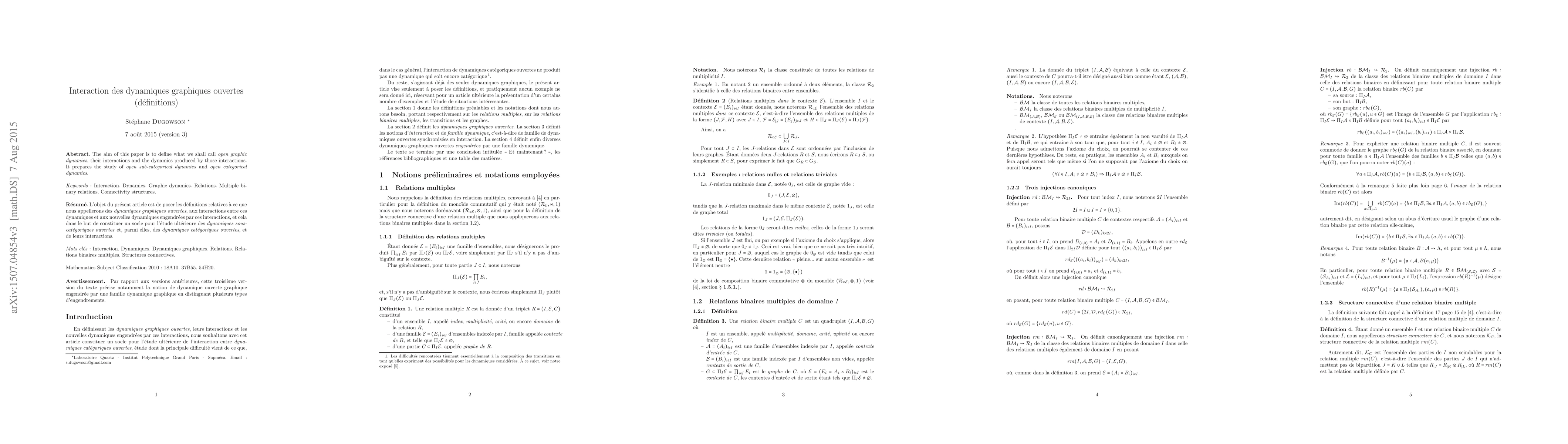 The aim of this paper is to define what we shall call open graphic dynamics, their interactions and the dynamics produced by those interactions. It prepares the study of "open sub-categorical dynamics" and "open categorical dynamics".