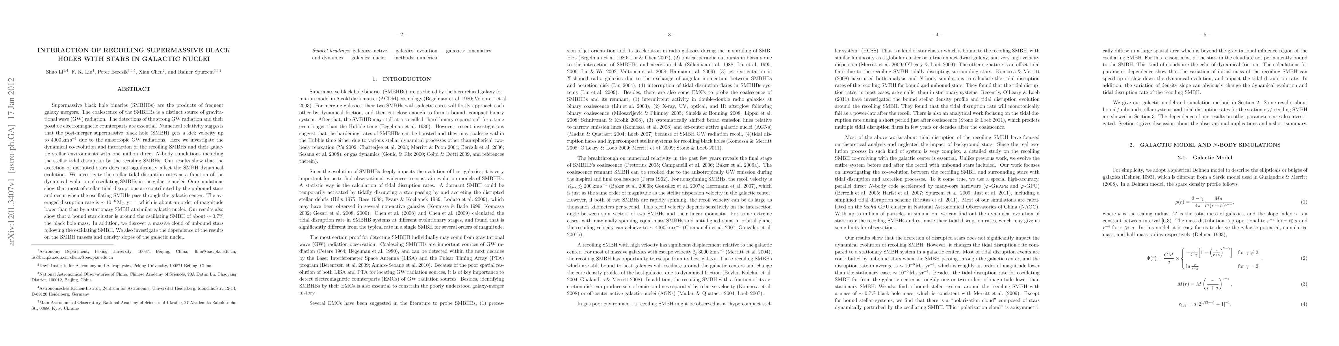 This study uses N-body simulations to explore the interaction of recoiling supermassive black holes (SMBHs) with stars in galactic nuclei, finding that while tidal disruptions occur, the accretion of disrupted stars does not significantly impact the SMBH's dynamical evolution. The average disruption rate is ~10^{-6} M_\odot yr^{-1}, an order of magnitude lower than for stationary SMBHs, with most disruptions happening when the oscillating SMBHs pass through the galactic center.