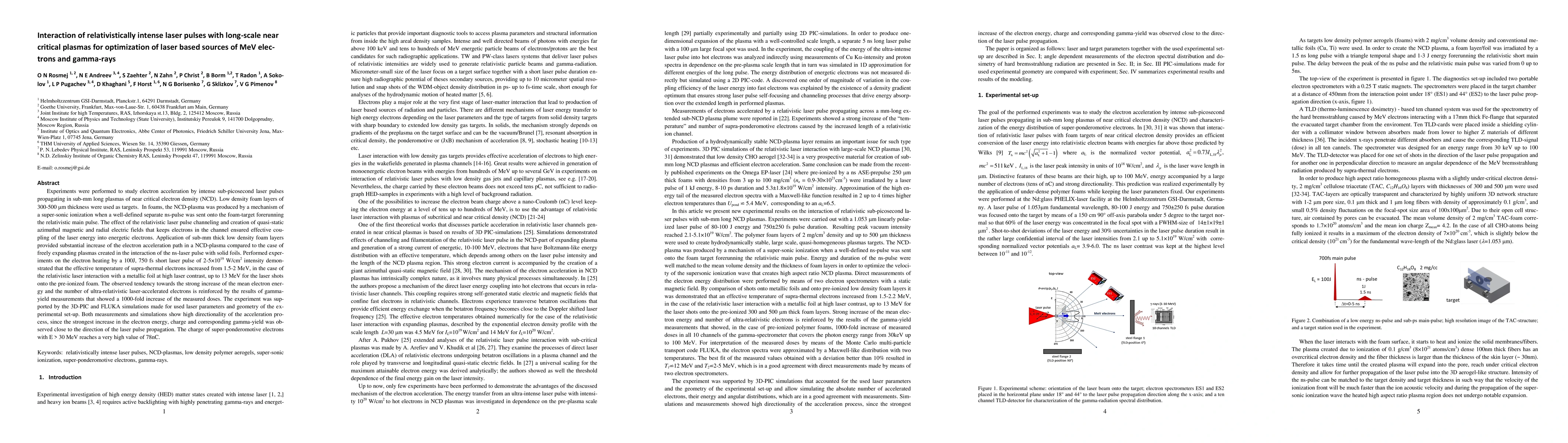 This research investigates the interaction of relativistically intense laser pulses with near-critical density plasmas, using sub-mm thick low-density foam targets to enhance electron acceleration. Experiments show a significant increase in electron energy and gamma-ray yield, with effective electron temperatures rising from 1.5-2 MeV to 13 MeV, supported by 3D-PIC and FLUKA simulations.