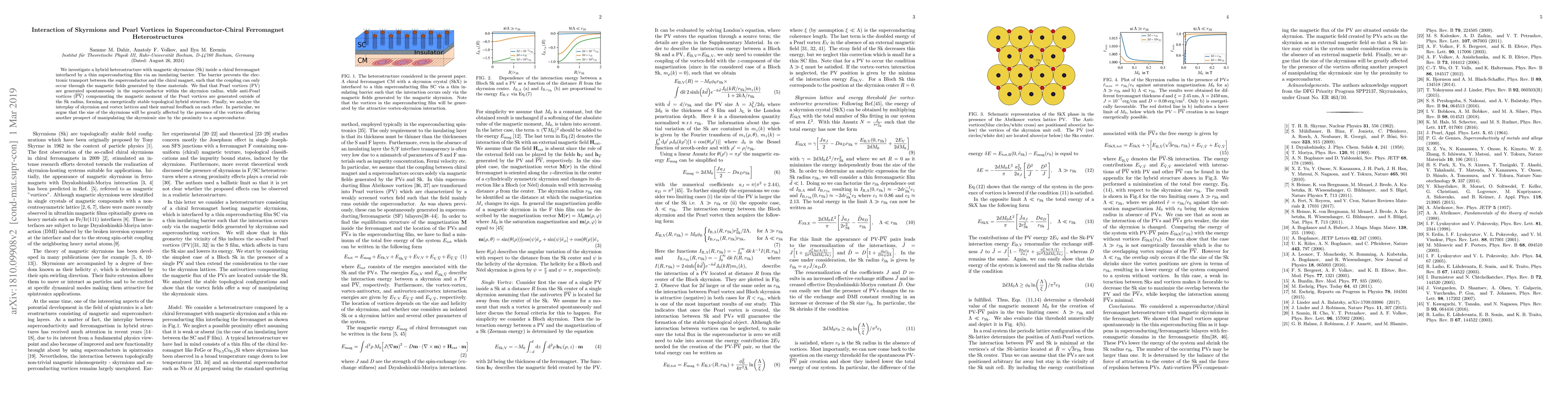 We investigate a hybrid heterostructure with magnetic skyrmions (Sk) inside a chiral ferromagnet interfaced by a thin superconducting film via an insulating barrier. The barrier prevents the electronic transport between the superconductor and the chiral magnet, such that the coupling can only occur through the magnetic fields generated by these materials. We find that Pearl vortices (PV) are generated spontaneously in the superconductor within the skyrmion radius, while anti-Pearl vortices (\(\overline{\mathrm{PV}}\)) compensating the magnetic moment of the Pearl vortices are generated outside of the Sk radius, forming an energetically stable topological hybrid structure. Finally, we analyze the interplay of skyrmion and vortex lattices and their mutual feedback on each other. In particular, we argue that the size of the skyrmions will be greatly affected by the presence of the vortices offering another prospect of manipulating the skyrmionic size by the proximity to a superconductor.
