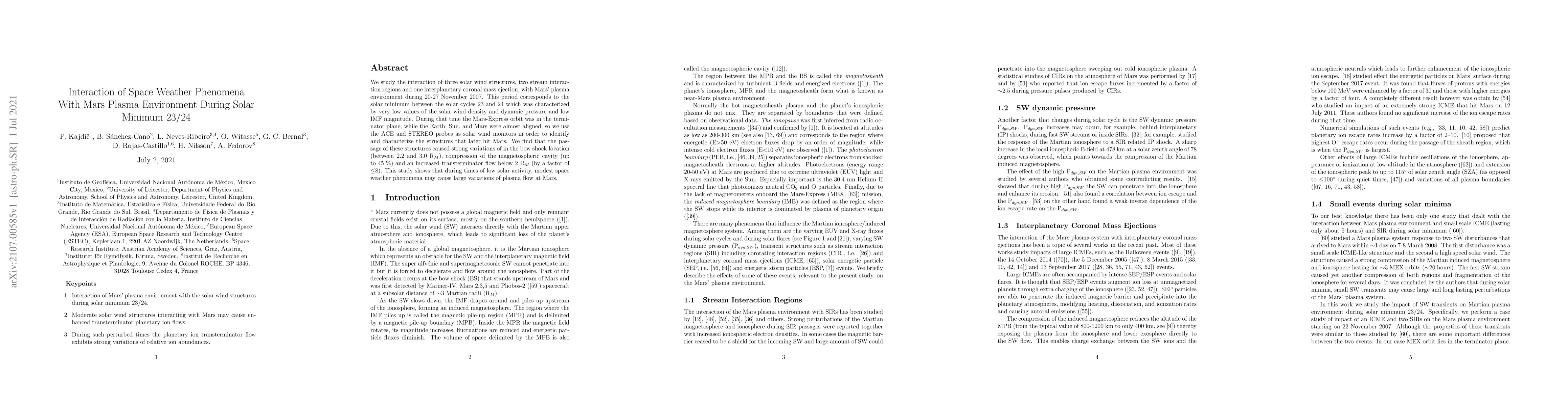 We study the interaction of three solar wind structures, two stream interaction regions and one interplanetary coronal mass ejection, with Mars' plasma environment during 20-27 November 2007. This period corresponds to the solar minimum between the solar cycles 23 and 24 which was characterized by very low values of the solar wind density and dynamic pressure and low IMF magnitude. During that time the Mars-Express orbit was in the terminator plane, while the Earth, Sun, and Mars were almost aligned, so we use the ACE and STEREO probes as solar wind monitors in order to identify and characterize the structures that later hit Mars. We find that the passage of these structures caused strong variations of in the bow shock location (between 2.2 and 3.0~R$_M$), compression of the magnetospheric cavity (up to 45~\%) and an increased transterminator flow below 2~R$_M$ (by a factor of $\leq$8). This study shows that during times of low solar activity, modest space weather phenomena may cause large variations of plasma flow at Mars.