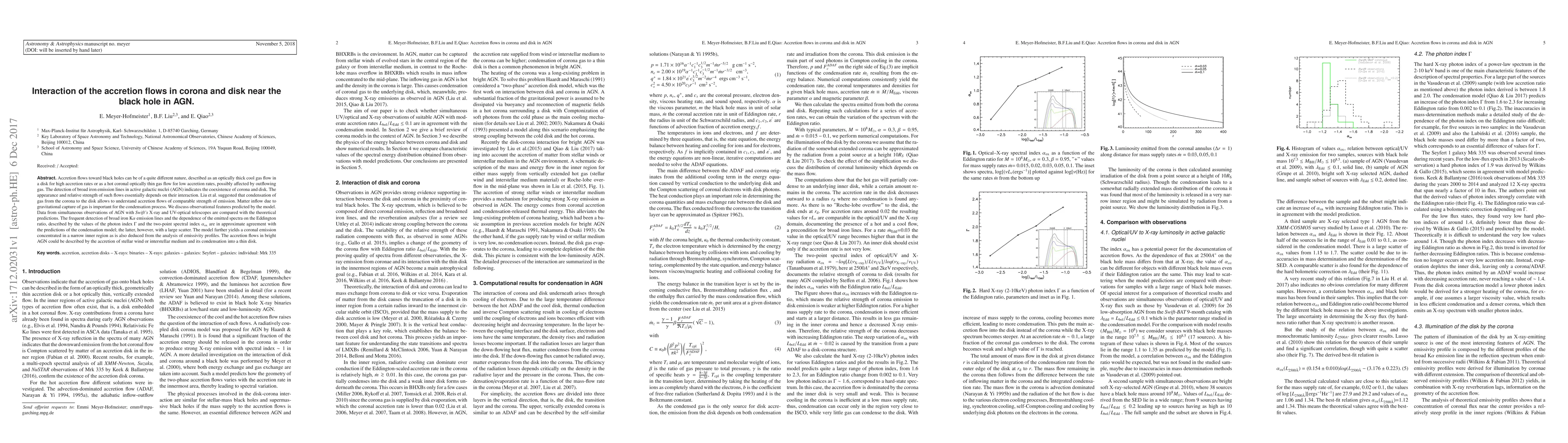 Accretion flows toward black holes can be of a quite different nature, described as an optically thick cool gas flow in a disk for high accretion rates or as a hot coronal optically thin gas flow for low accretion rates, possibly affected by outflowing gas. The detection of broad iron emission lines in active galactic nuclei (AGN) indicates the coexistence of corona and disk. The appearance and relative strength of such flows essentially depends on their interaction. Liu et al. suggested that condensation of gas from the corona to the disk allows to understand accretion flows of comparable strength of emission. Matter inflow due to gravitational capture of gas is important for the condensation process. We discuss observational features predicted by the model. Data from simultaneous observations of AGN with {\it {Swift's}} X-ray and UV-optical telescopes are compared with the theoretical predictions. The frequent detection of broad iron K$\alpha$ emission lines and the dependence of the emitted spectra on the Eddington ratio, described by the values of the photon index $\Gamma$ and the two-point spectral index $\alpha_{\rm{ox}}$ are in approximate agreement with the predictions of the condensation model; the latter, however, with a large scatter. The model further yields a coronal emission concentrated in a narrow inner region as is also deduced from the analysis of emissivity profiles. The accretion flows in bright AGN could be described by the accretion of stellar wind or interstellar medium and its condensation into a thin disk.