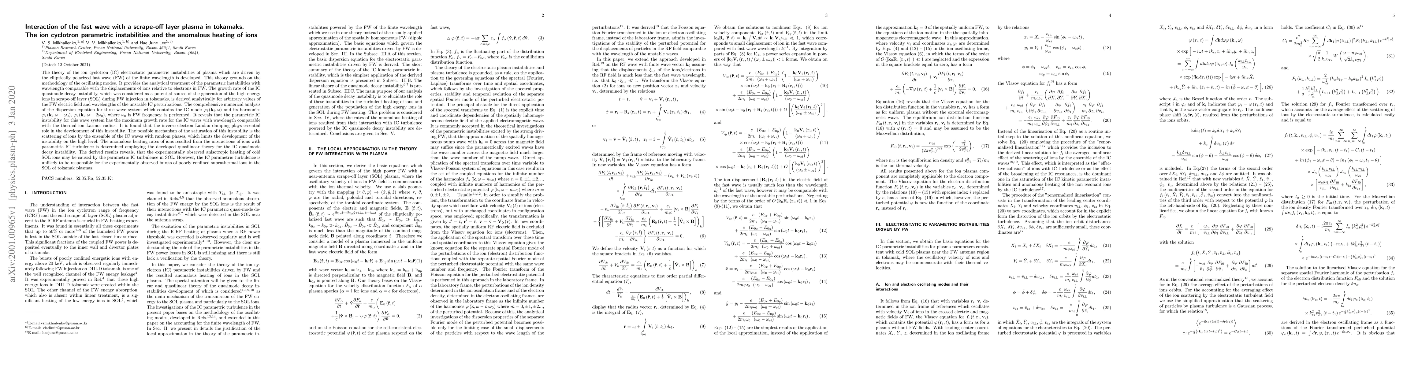 This paper develops a theory for ion cyclotron electrostatic parametric instabilities driven by fast waves in tokamak plasmas, deriving the growth rate of the IC quasimode decay instability. It finds that these instabilities can lead to anomalous heating of ions in the scrape-off layer, explaining observed anisotropic heating but not bursts of poorly confined suprathermal ions.