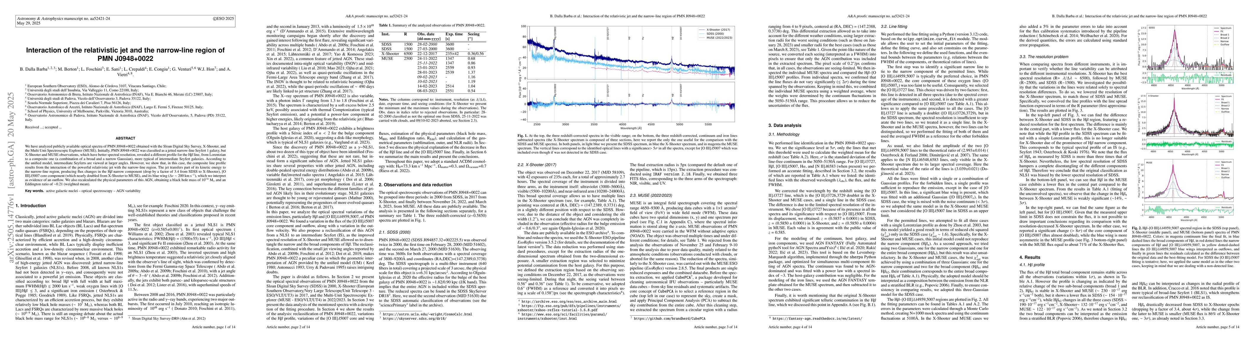 The research utilized publicly available optical spectra from SDSS, X-Shooter, and MUSE for PMN J0948+0022, analyzing H$\beta$ line profiles to understand the interaction between the relativistic jet and the narrow-line region.
