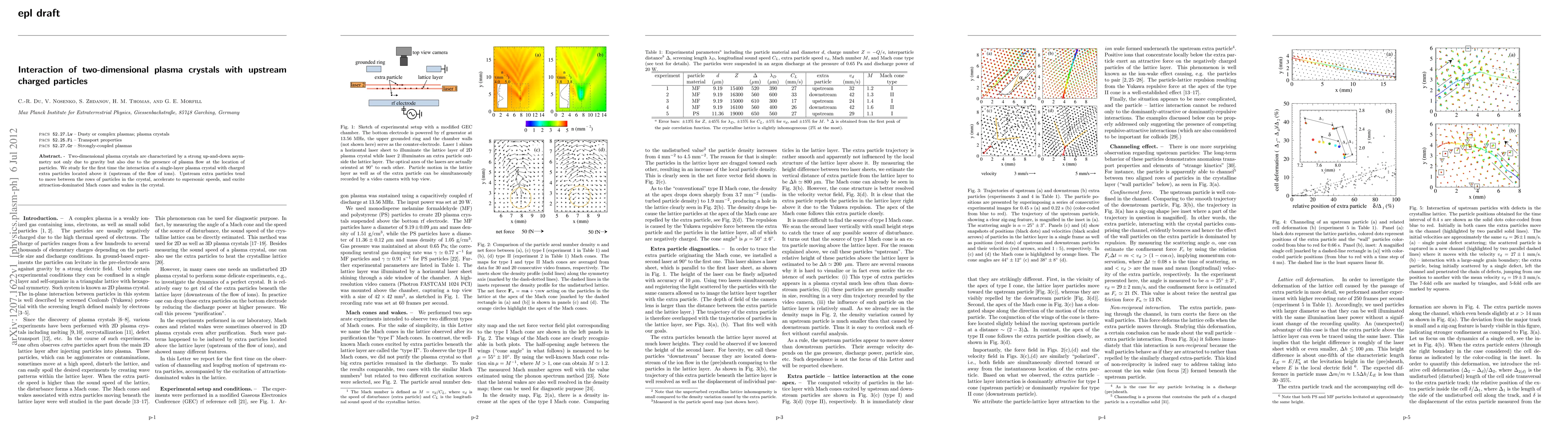 This study investigates the interaction of upstream charged particles with a two-dimensional plasma crystal, revealing that these particles accelerate between the crystal rows to supersonic speeds, creating attraction-dominated Mach cones and wakes.