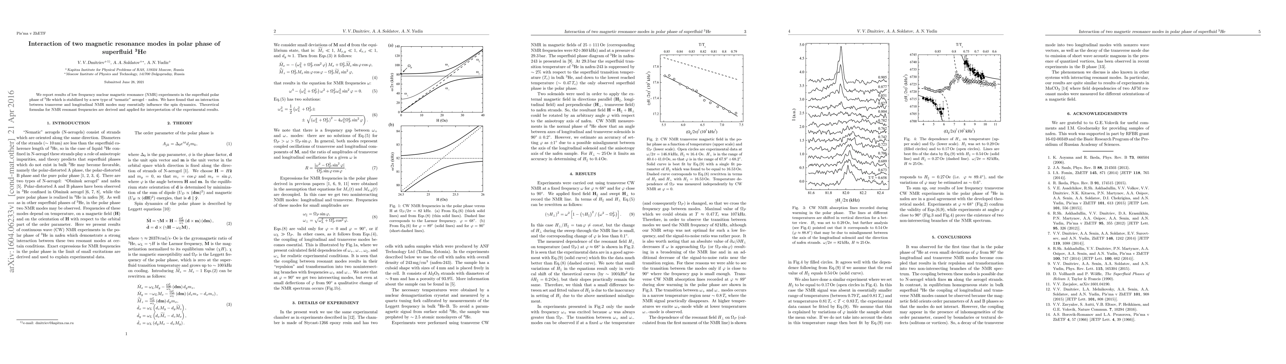 We report results of low frequency nuclear magnetic resonance (NMR) experiments in the superfluid polar phase of 3He which is stabilized by a new type of "nematic" aerogel - nafen. We have found that an interaction between transverse and longitudinal NMR modes may essentially influence the spin dynamics. Theoretical formulas for NMR resonant frequencies are derived and applied for interpretation of the experimental results.