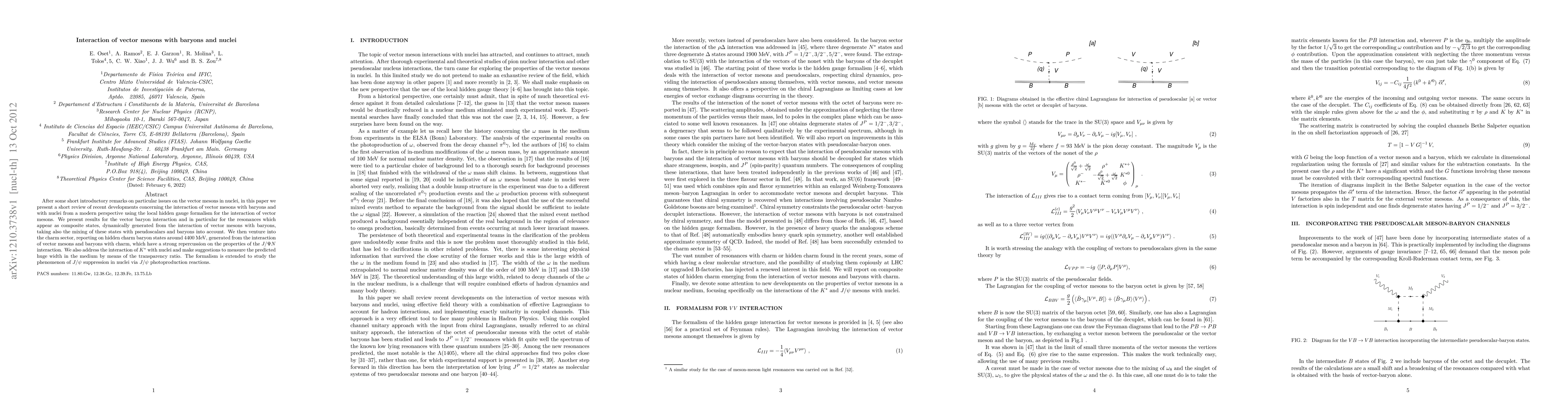 This paper reviews recent developments in understanding how vector mesons interact with baryons and nuclei, leading to the discovery of new hidden charm baryon states and insights into $J/ heta$ suppression in nuclei.
