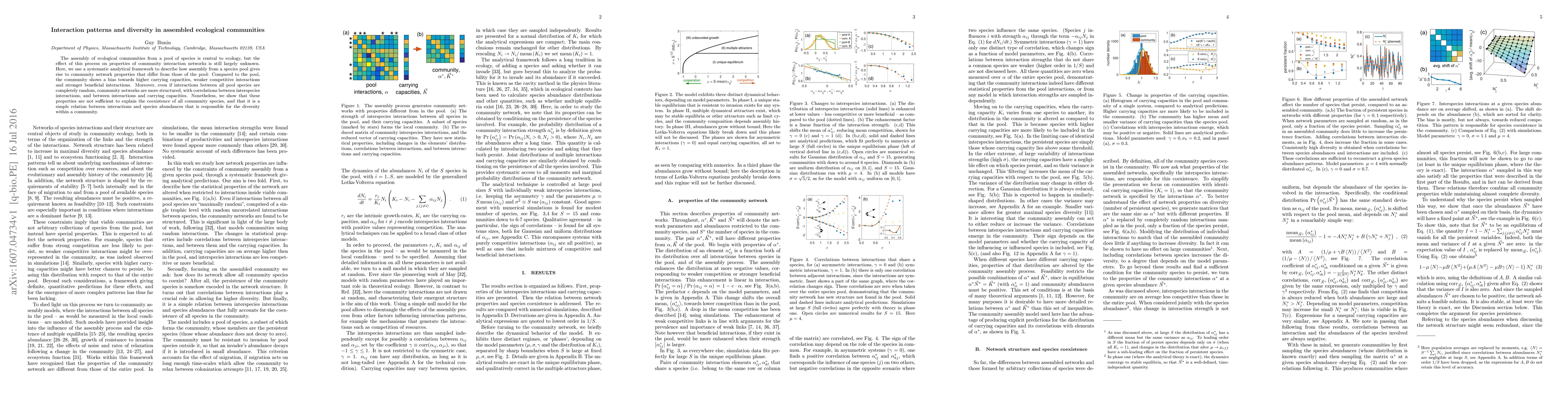 The assembly of ecological communities from a pool of species is central to ecology, but the effect of this process on properties of community interaction networks is still largely unknown. Here, we use a systematic analytical framework to describe how assembly from a species pool gives rise to community network properties that differ from those of the pool: Compared to the pool, the community shows a bias towards higher carrying capacities, weaker competitive interactions and stronger beneficial interactions. Moreover, even if interactions between all pool species are completely random, community networks are more structured, with correlations between interspecies interactions, and between interactions and carrying capacities. Nonetheless, we show that these properties are not sufficient to explain the coexistence of all community species, and that it is a simple relation between interactions and species abundances that is responsible for the diversity within a community.
