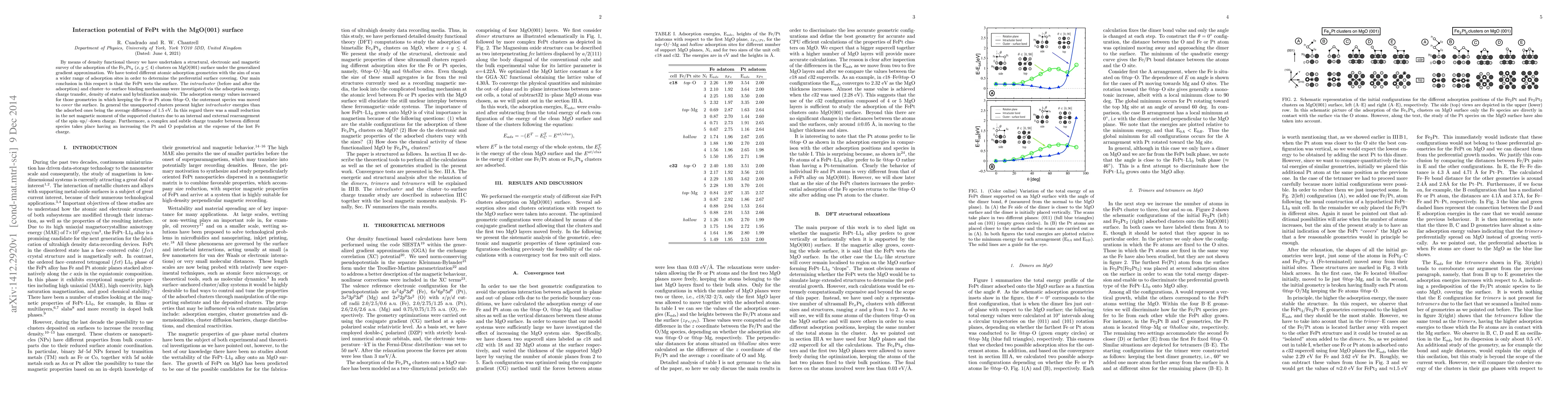 By means of density functional theory we have undertaken a structural, electronic and magnetic survey of the adsorption of the Fe_xPt_y(x,y=<4) clusters on MgO (001) surface under the generalized gradient approximation. We have tested different atomic adsorption geometries with the aim of scan a wider range of adsorption sites in order to determine the preferential surface covering. Our main conclusion in this respect is that the FePt wets the surface. The intracluster (before and after the adsorption) and cluster-to-surface binding mechanisms were investigated via the adsorption energy, charge transfer, density of states and hybridization analysis. The adsorption energy values increased for those geometries in which keeping the Fe or Pt atom @top-O, the outermost species was moved to cover the surface. In general the unsupported clusters present higher intracluster energies than the adsorbed ones being the average difference of 1.5 eV. In this regard there was a small reduction in the net magnetic moment of the supported clusters due to an internal and external rearrangement of the spin-up/-down charge. Furthermore, a complex and subtle charge transfer between different species takes place having an increasing the Pt and O population at the expense of the lost Fe charge.