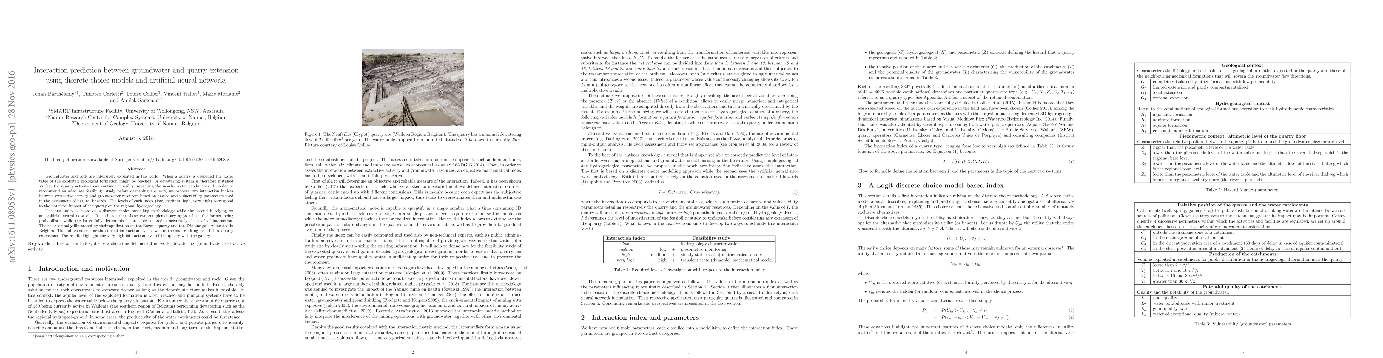 Researchers developed two models to predict interaction between groundwater and quarry activities, one using discrete choice modeling and the other an artificial neural network, with promising results in predicting potential impact on regional hydrogeology.