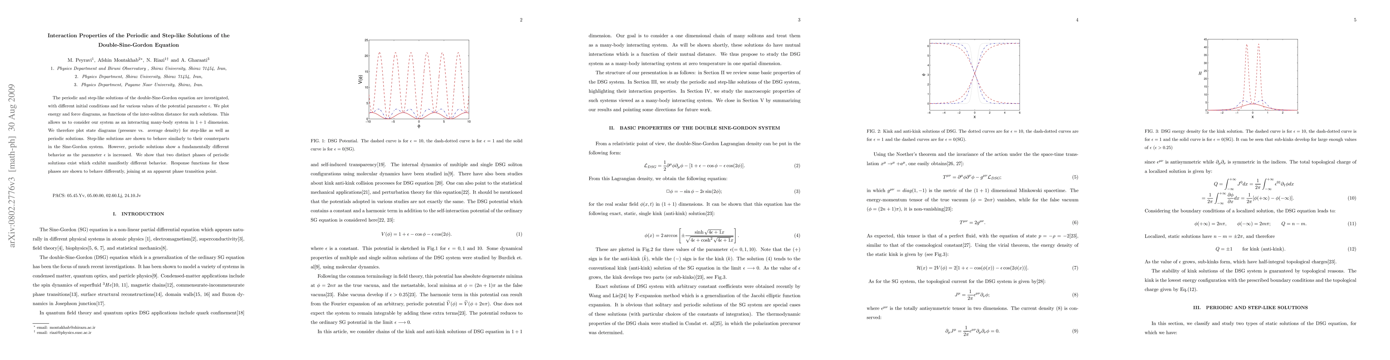 This paper investigates the interaction properties of periodic and step-like solutions of the double-Sine-Gordon equation under varying initial conditions and potential parameter values. It reveals distinct phases in periodic solutions and their differing response functions, suggesting a phase transition point.