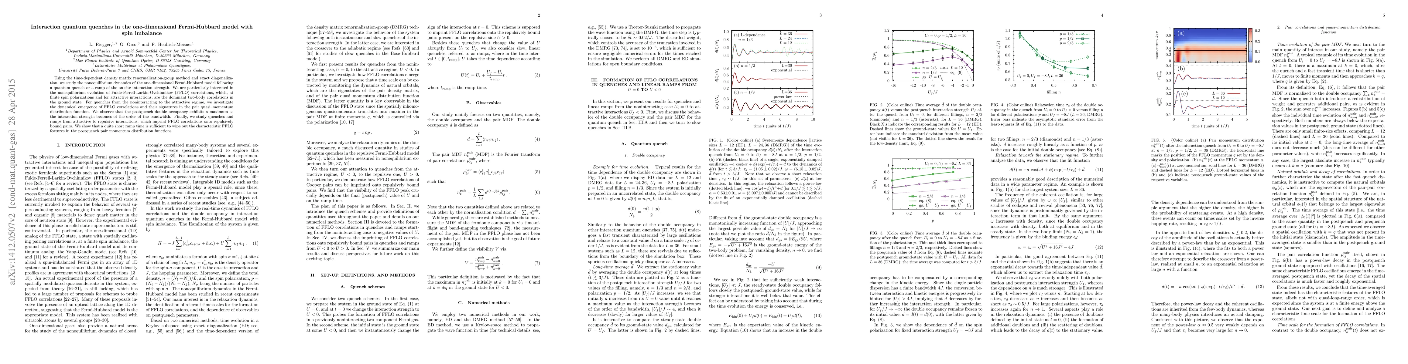 This paper explores the dynamics of the one-dimensional Fermi-Hubbard model following a quantum quench in onsite interaction strength, focusing on the emergence of FFLO correlations and their signatures in the pair quasi-momentum distribution function, particularly under spin imbalance conditions. It finds that FFLO correlations are wiped out with a short ramp time from attractive to repulsive interactions.