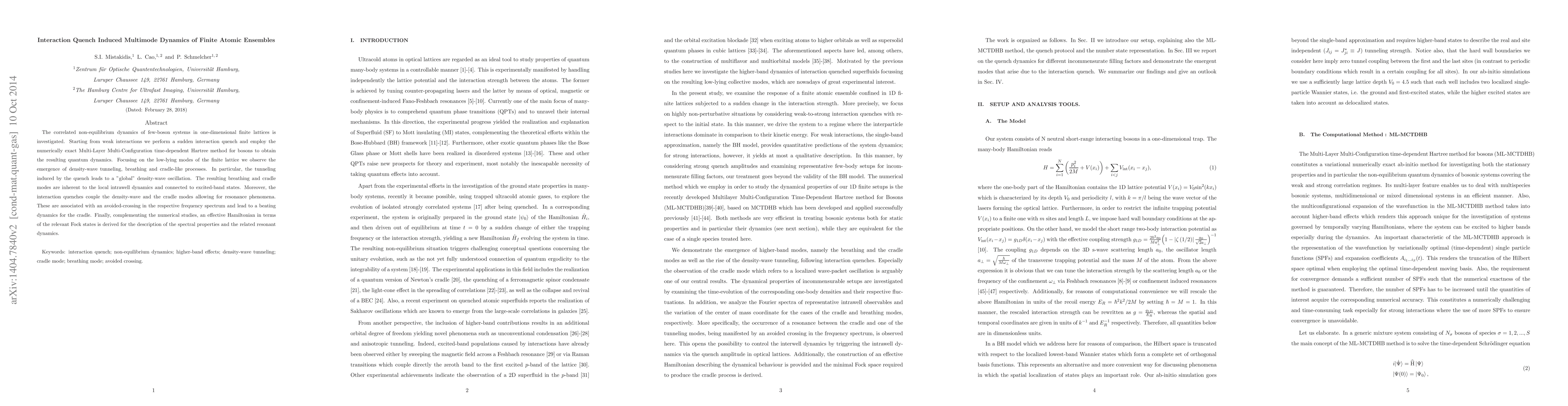 The correlated non-equilibrium dynamics of few-boson systems in one-dimensional finite lattices is investigated. Starting from weak interactions we perform a sudden interaction quench and employ the numerically exact Multi-Layer Multi-Configuration time-dependent Hartree method for bosons to obtain the resulting quantum dynamics. Focusing on the low-lying modes of the finite lattice we observe the emergence of density-wave tunneling, breathing and cradle-like processes. In particular, the tunneling induced by the quench leads to a "global" density-wave oscillation. The resulting breathing and cradle modes are inherent to the local intrawell dynamics and connected to excited-band states. Moreover, the interaction quenches couple the density-wave and the cradle modes allowing for resonance phenomena. These are associated with an avoided-crossing in the respective frequency spectrum and lead to a beating dynamics for the cradle. Finally, complementing the numerical studies, an effective Hamiltonian in terms of the relevant Fock states is derived for the description of the spectral properties and the related resonant dynamics.