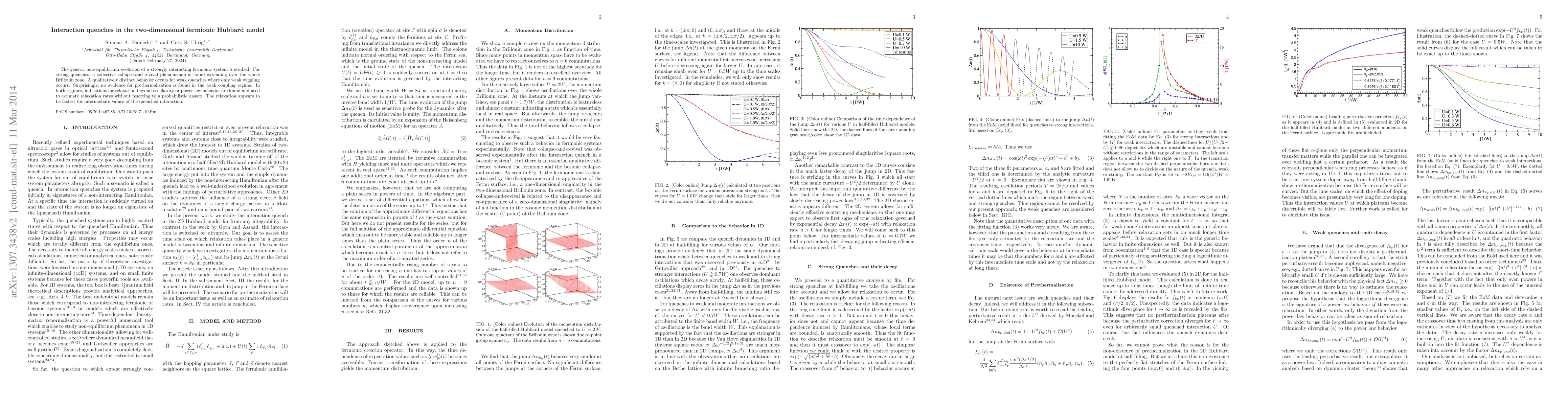Research on the 2D fermionic Hubbard model reveals a collective collapse-and-revival phenomenon after strong quenches, but no prethermalization in weak quench regimes; relaxation rates are found to be fastest for intermediate quenched interaction values.