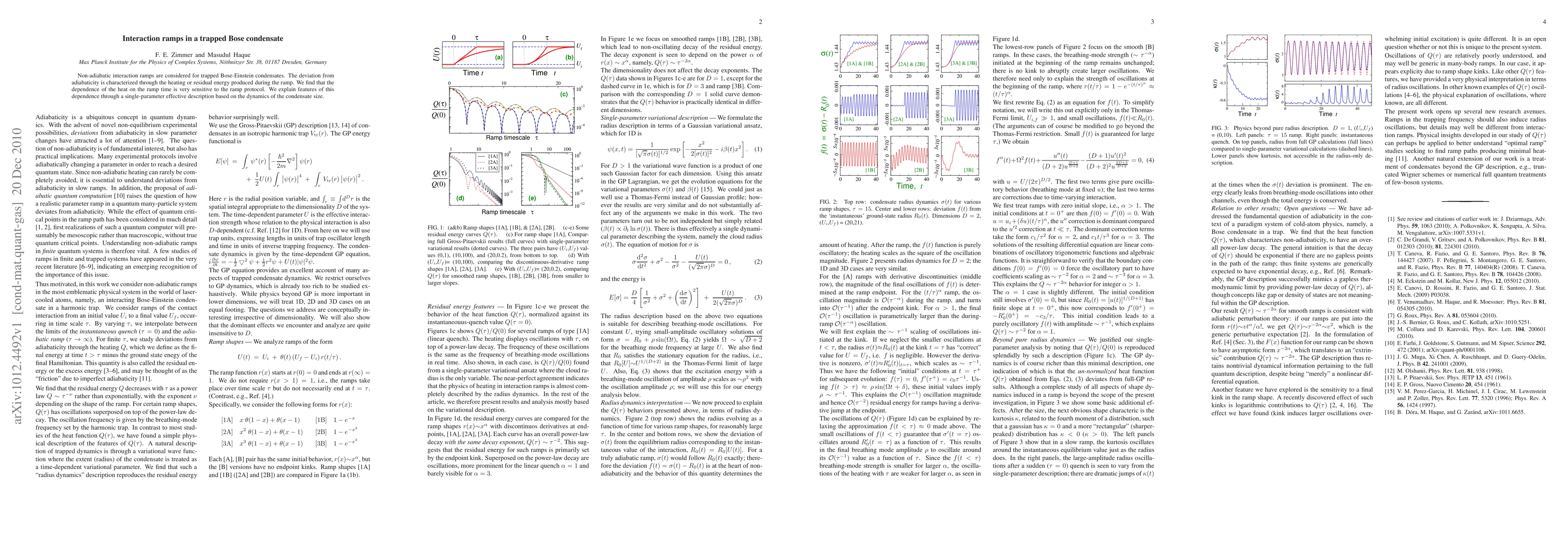 Non-adiabatic interaction ramps are considered for trapped Bose-Einstein condensates. The deviation from adiabaticity is characterized through the heating or residual energy produced during the ramp. We find that the dependence of the heat on the ramp time is very sensitive to the ramp protocol. We explain features of this dependence through a single-parameter effective description based on the dynamics of the condensate size.