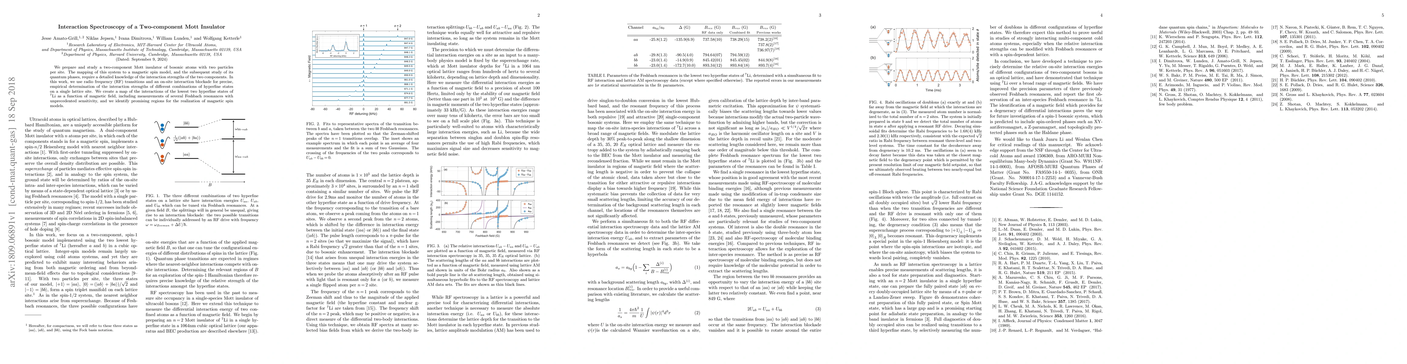 This research precisely determines the interaction strengths of a two-component Mott insulator using radio frequency transitions and interaction blockade, mapping the interactions of $^7$Li hyperfine states and identifying Feshbach resonances to explore potential magnetic spin models. The study provides detailed empirical data for understanding quantum phases in such systems.