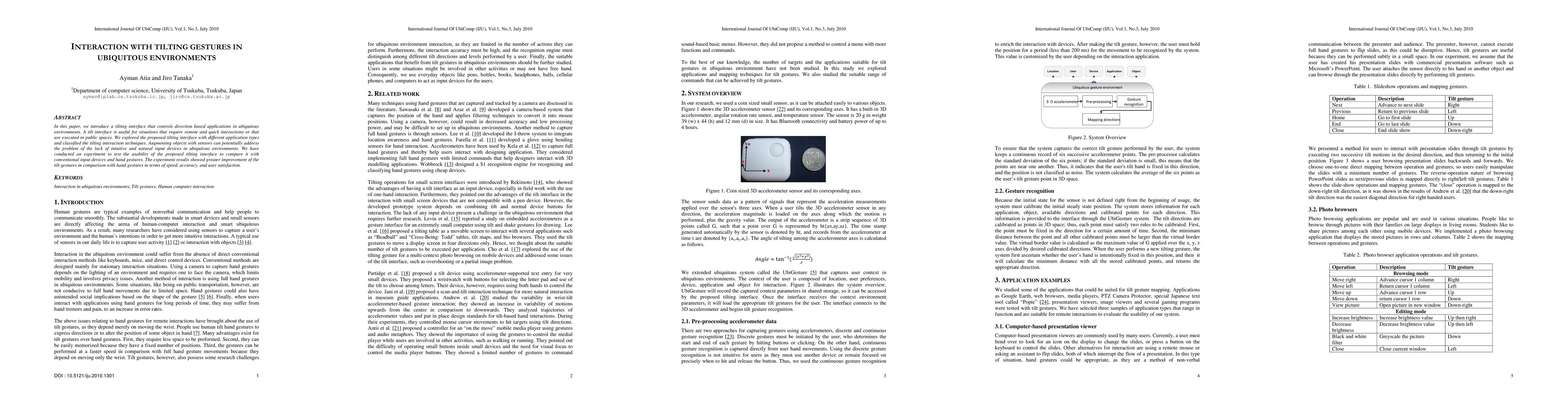 This paper proposes a tilting interface for controlling direction-based applications in ubiquitous environments, demonstrating its effectiveness through experiments comparing it with conventional input devices and hand gestures. Results indicate that tilt gestures significantly outperform hand gestures in speed, accuracy, and user satisfaction.