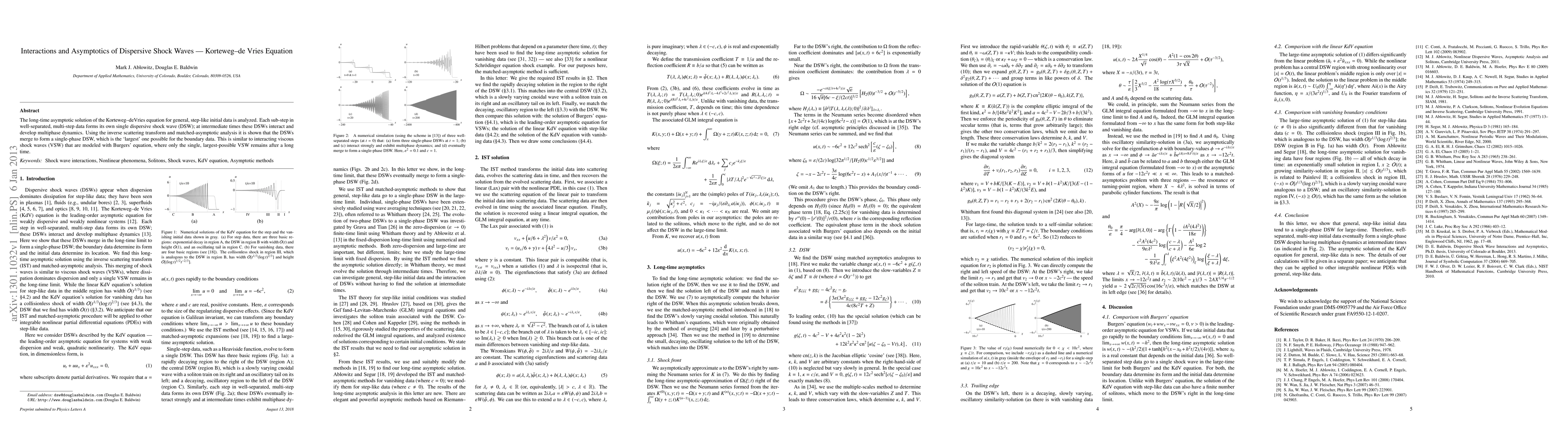 This paper analyzes the long-term behavior of the Korteweg-de Vries equation with initial step-like data, showing that sub-steps form individual dispersive shock waves that interact and eventually merge into a single, largest dispersive shock wave, analogous to the behavior of viscous shock waves in Burgers' equation. The study employs the inverse scattering transform and matched-asymptotic analysis to derive this result.