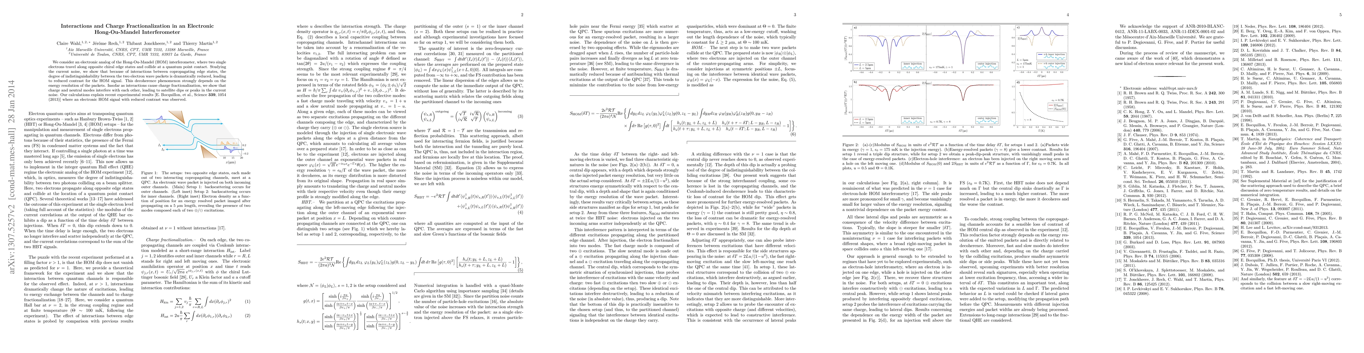 We consider an electronic analog of the Hong-Ou-Mandel (HOM) interferometer, where two single electrons travel along opposite chiral edge states and collide at a Quantum Point Contact. Studying the current noise, we show that because of interactions between co-propagating edge states, the degree of indistinguishability between the two electron wavepackets is dramatically reduced, leading to reduced contrast for the HOM signal. This decoherence phenomenon strongly depends on the energy resolution of the packets. Insofar as interactions cause charge fractionalization, we show that charge and neutral modes interfere with each other, leading to satellite dips or peaks in the current noise. Our calculations explain recent experimental results [E. Bocquillon, et al., Science 339, 1054(2013)] where an electronic HOM signal with reduced contrast was observed.