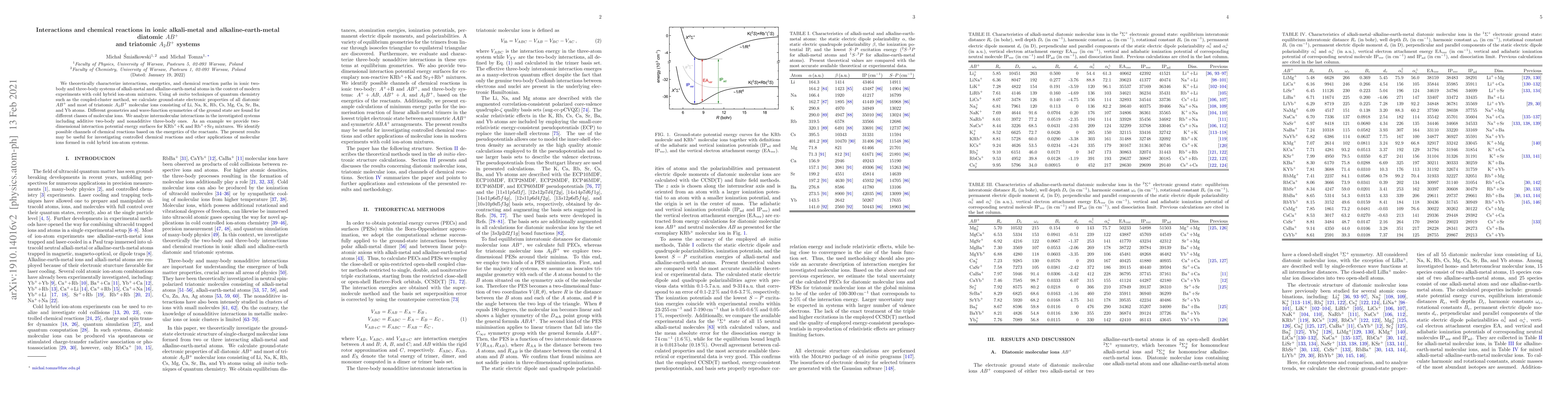 This paper uses \textit{ab initio} quantum chemistry to theoretically analyze the interactions, energetics, and reaction paths in ionic diatomic and triatomic systems of alkali and alkaline-earth metals. The findings provide insights into ground-state properties and potential reaction channels in cold hybrid ion-atom mixtures, which could be applied in controlled chemical reactions.