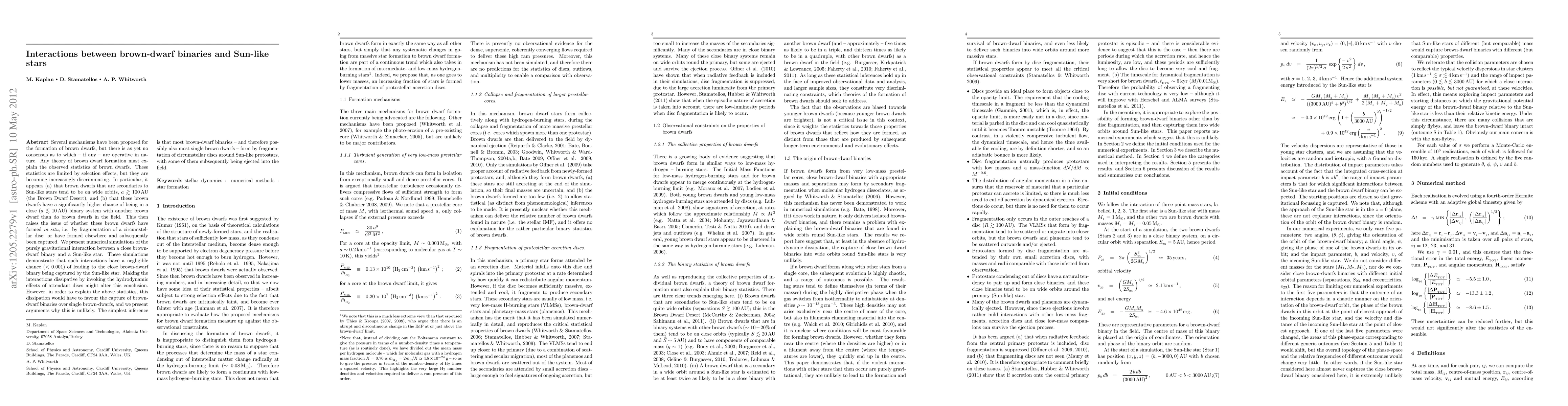 This paper investigates the interactions between brown-dwarf binaries and Sun-like stars, finding that gravitational interactions have a negligible chance of capturing the binaries. The study suggests that most brown-dwarf binaries likely form in situ by disc fragmentation around Sun-like protostars, with some being ejected.