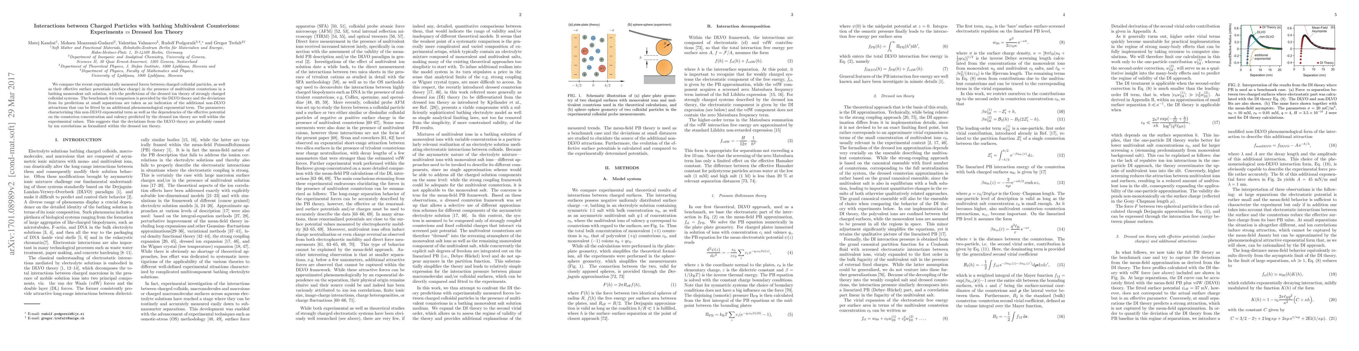 This paper compares experimental measurements of forces and effective surface potentials between charged colloidal particles in the presence of multivalent counterions with predictions from dressed ion theory. The study finds that dressed ion theory parameters align well with experimental data, suggesting that ion correlations formalized in this theory explain deviations from DLVO theory predictions.