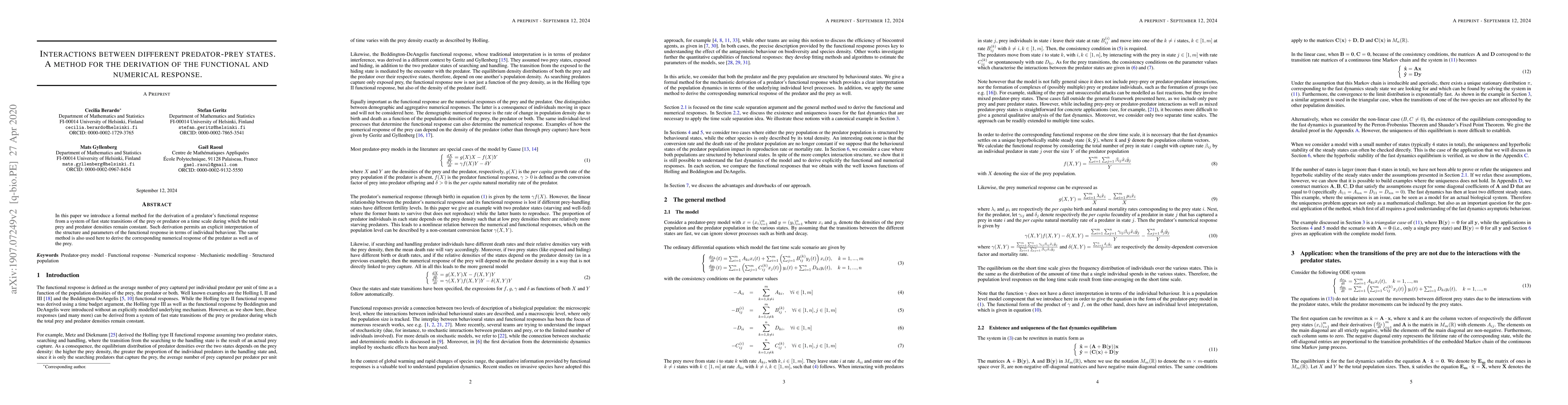 This paper presents a formal method to derive the functional and numerical responses of predators and prey from their state transitions, allowing for an explicit interpretation of individual behavior in terms of these responses. The method maintains constant total densities during the analysis.