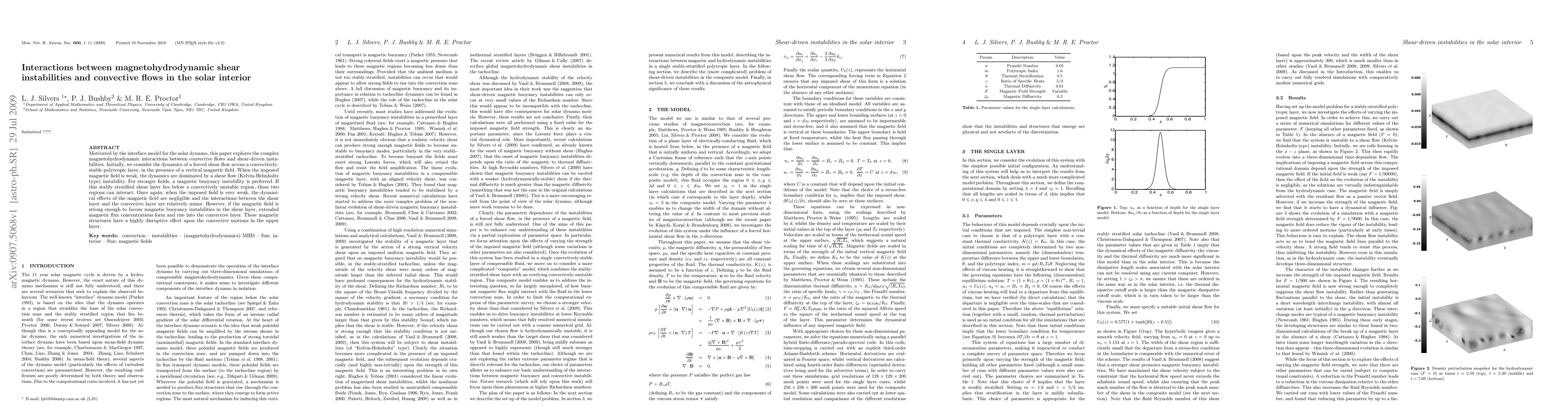 This paper investigates the magnetohydrodynamic interactions between convective flows and shear instabilities in the solar interior, showing that weak magnetic fields favor shear flow instabilities while strong fields promote magnetic buoyancy instabilities, which can disrupt convective motions when interacting with convectively unstable regions.