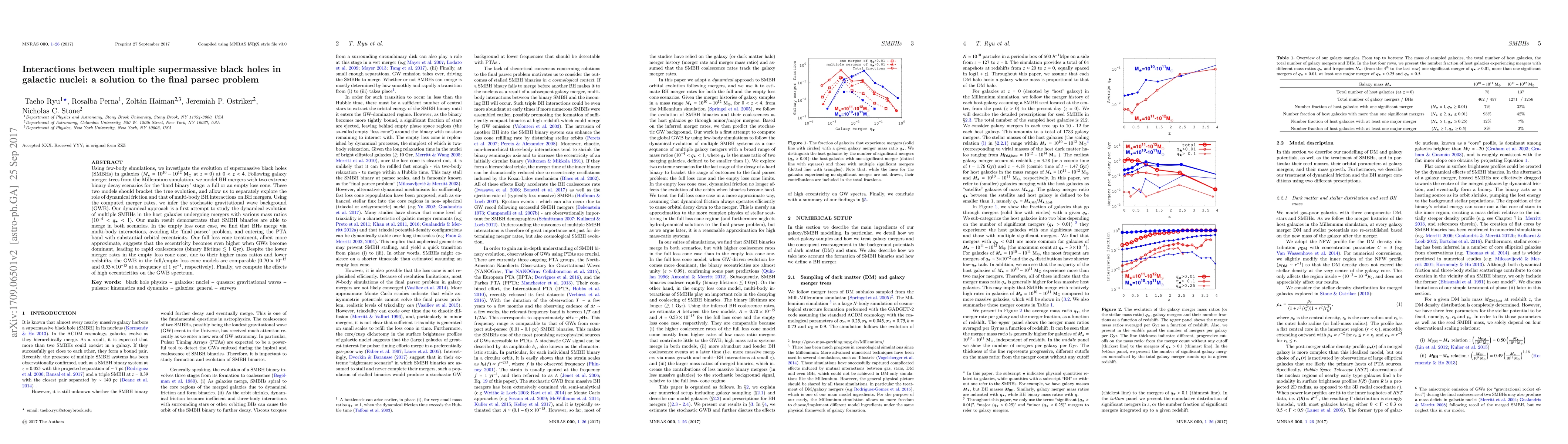 Research simulates interactions between multiple supermassive black holes in galaxies, finding that they can merge via multi-body interactions without the 'final parsec' problem, producing a comparable stochastic gravitational wave background.
