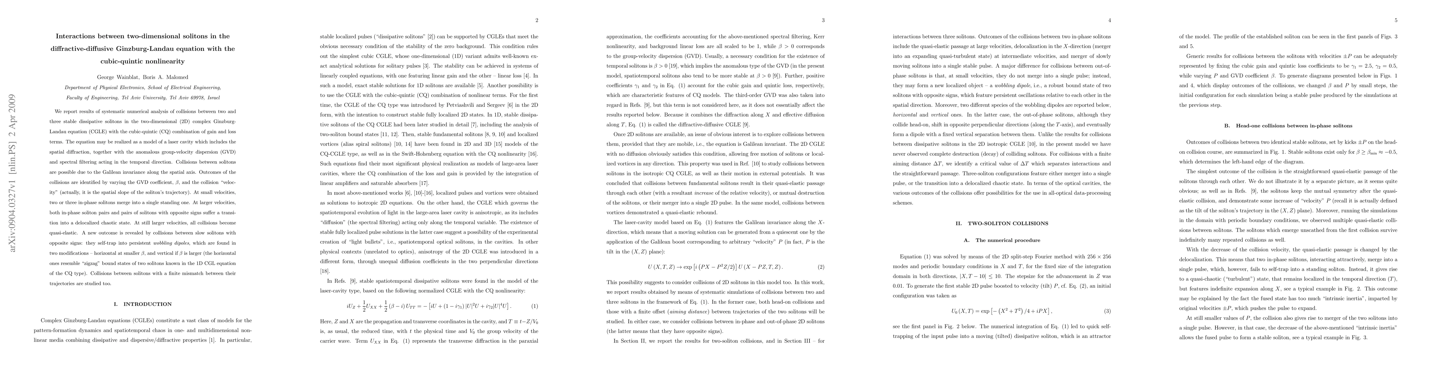 This paper presents a numerical study of interactions between two-dimensional solitons in the diffractive-diffusive Ginzburg-Landau equation with cubic-quintic nonlinearity, revealing diverse collision outcomes including merging, chaotic states, and quasi-elastic scattering. Notably, opposite-sign solitons form persistent wobbling dipoles, depending on the group-velocity dispersion coefficient.