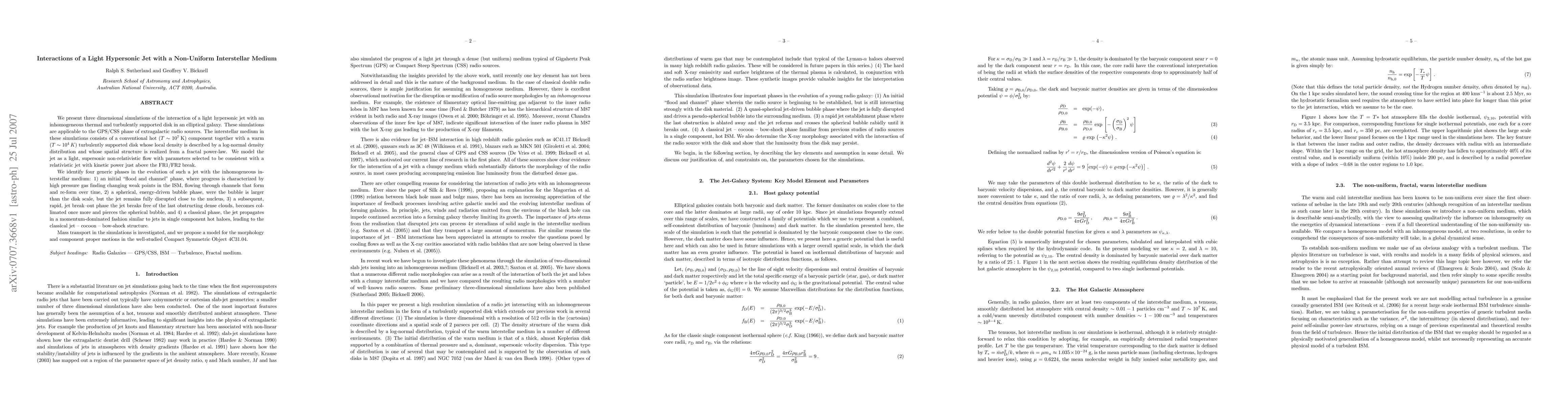 We present three dimensional simulations of the interaction of a light hypersonic jet with an inhomogeneous thermal and turbulently supported disk in an elliptical galaxy. We model the jet as a light, supersonic non-relativistic flow with parameters selected to be consistent with a relativistic jet with kinetic power just above the FR1/FR2 break. We identify four generic phases in the evolution of such a jet with the inhomogeneous interstellar medium: 1) an initial ``flood and channel'' phase, where progress is characterized by high pressure gas finding changing weak points in the ISM, flowing through channels that form and re-form over time, 2) a spherical, energy-driven bubble phase, were the bubble is larger than the disk scale, but the jet remains fully disrupted close to the nucleus, 3) a rapid, jet break--out phase the where jet breaks free of the last dense clouds, becomes collimated and pierces the spherical bubble, and 4) a classical phase, the jet propagates in a momentum-dominated fashion leading to the classical jet + cocoon + bow-shock structure. Mass transport in the simulations is investigated, and we propose a model for the morphology and component proper motions in the well-studied Compact Symmetric Object 4C31.04.