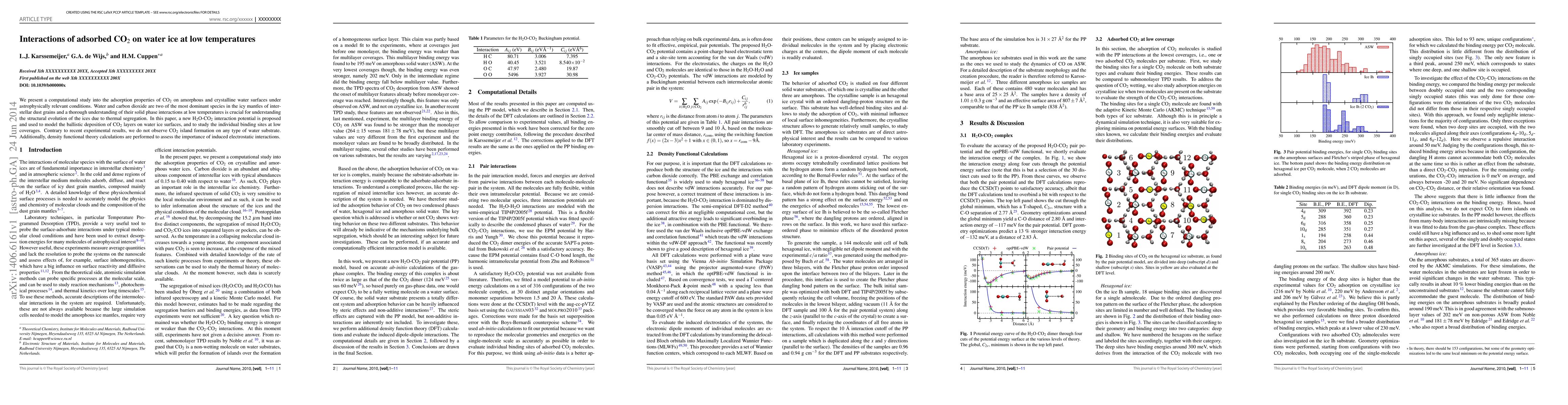 This study computationally investigates CO$_2$ adsorption on amorphous and crystalline water ice under low-temperature astrophysical conditions, proposing a new H$_2$O-CO$_2$ interaction potential. Contrary to recent experiments, it finds no CO$_2$ island formation and uses DFT to evaluate induced electrostatic interactions.