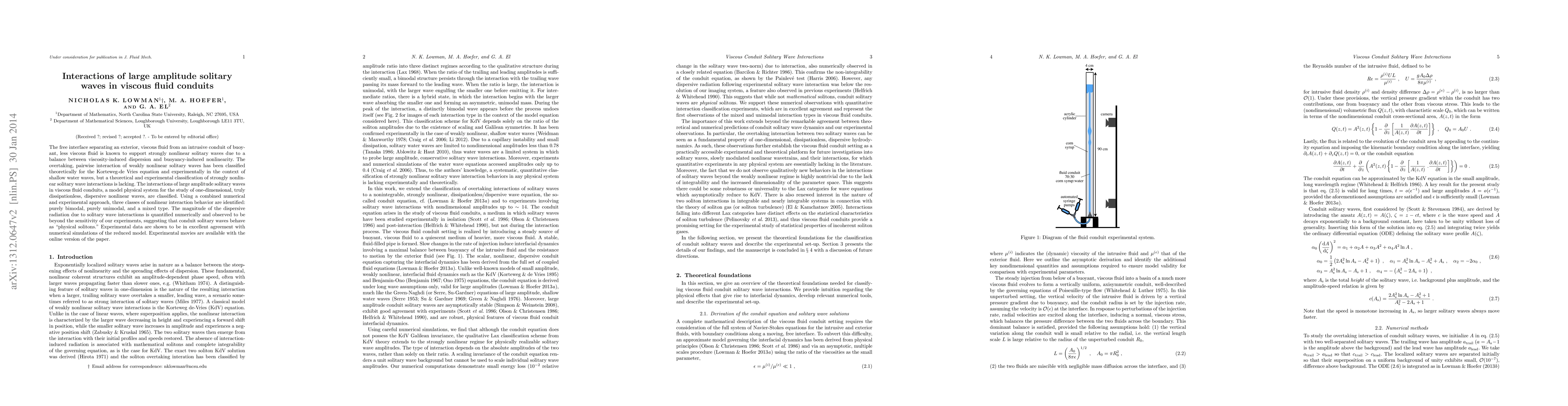 This paper classifies the interactions of large amplitude solitary waves in viscous fluid conduits, identifying three types of nonlinear interaction behaviors: purely bimodal, purely unimodal, and mixed. Experimental and numerical results suggest these solitary waves behave as "physical solitons," with excellent agreement between simulations and experiments.