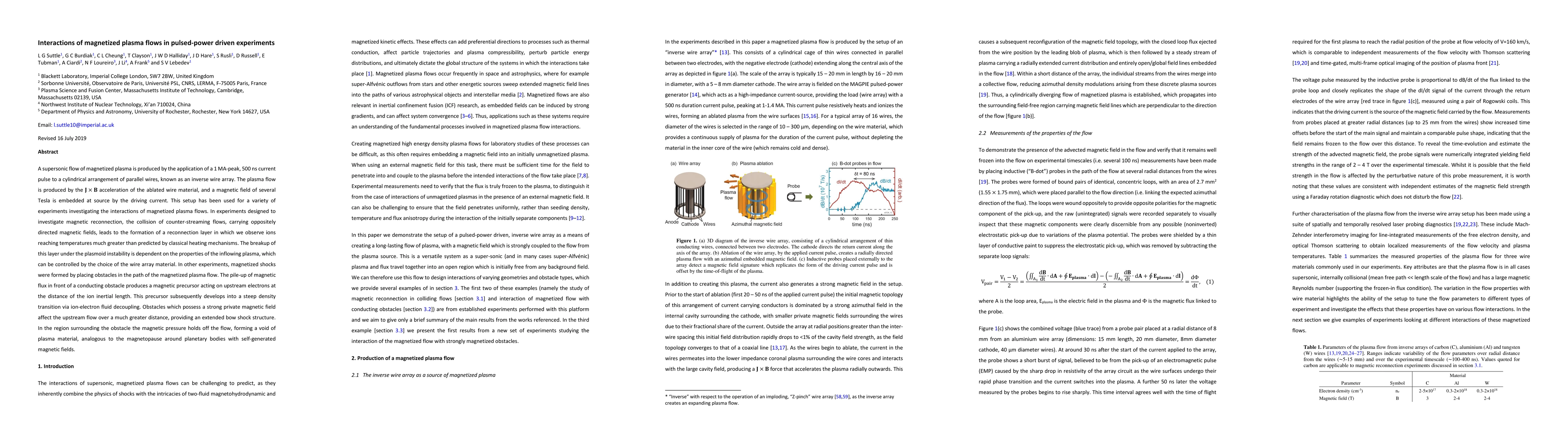 Researchers created a supersonic flow of magnetized plasma using an inverse wire array and observed ions reaching high temperatures in magnetic reconnection experiments, as well as the formation of bow shocks and voids around obstacles.