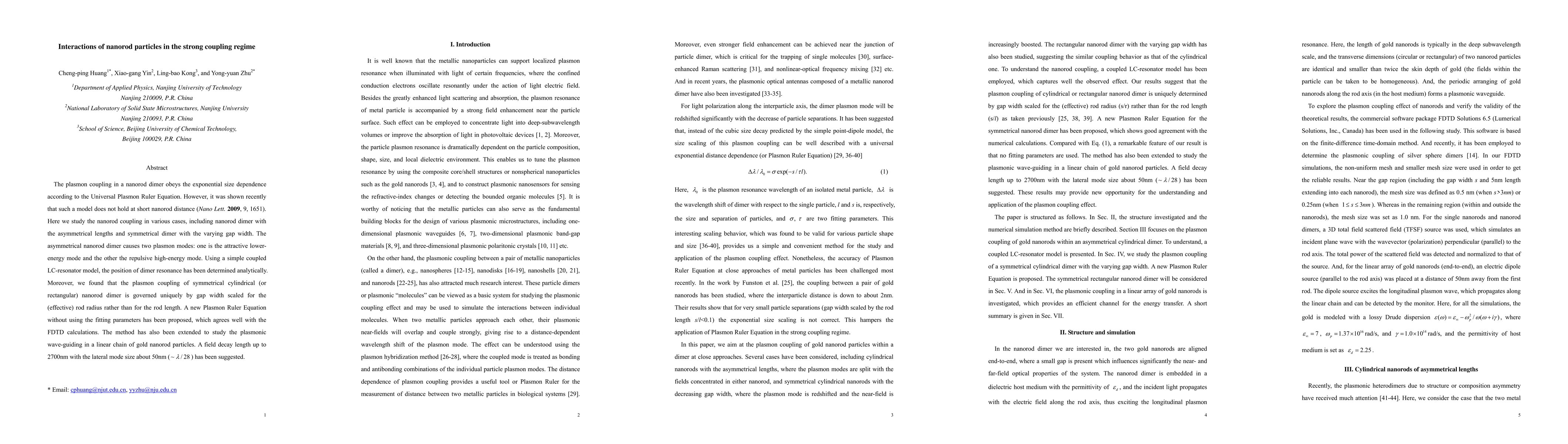 The plasmon coupling in a nanorod dimer obeys the exponential size dependence according to the Universal Plasmon Ruler Equation. However, it was shown recently that such a model does not hold at short nanorod distance (Nano Lett. 2009, 9, 1651). Here we study the nanorod coupling in various cases, including nanorod dimer with the asymmetrical lengths and symmetrical dimer with the varying gap width. The asymmetrical nanorod dimer causes two plasmon modes: one is the attractive lower- energy mode and the other the repulsive high-energy mode. Using a simple coupled LC-resonator model, the position of dimer resonance has been determined analytically. Moreover, we found that the plasmon coupling of symmetrical cylindrical (or rectangular) nanorod dimer is governed uniquely by gap width scaled for the (effective) rod radius rather than for the rod length. A new Plasmon Ruler Equation without using the fitting parameters has been proposed, which agrees well with the FDTD calculations. The method has also been extended to study the plasmonic wave-guiding in a linear chain of gold nanorod particles. A field decay length up to 2700nm with the lateral mode size about 50nm (~wavelength/28) has been suggested.