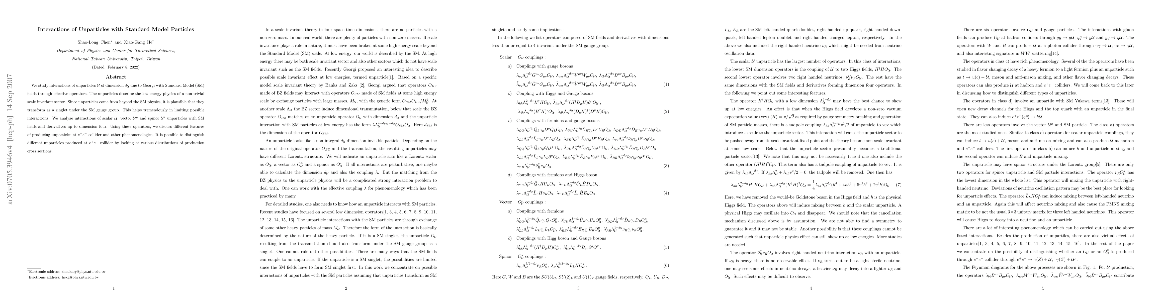 This paper investigates the interactions of unparticles with Standard Model particles via effective operators, focusing on scalar, vector, and spinor unparticles. It explores their production at $e^+ e^-$ colliders and discusses how different unparticles can be distinguished through various production cross-section distributions.