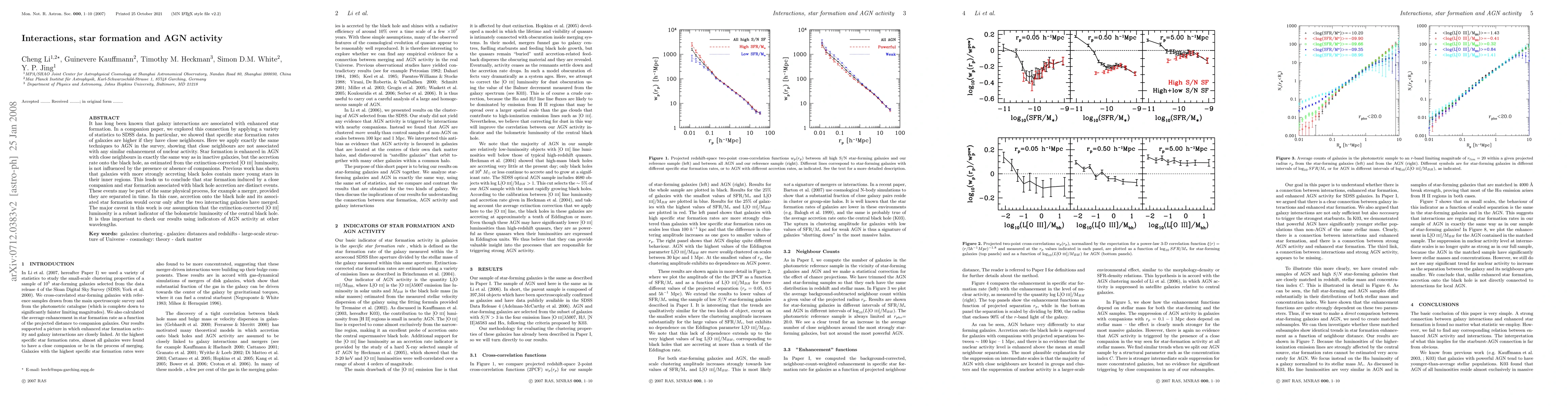 It has long been known that galaxy interactions are associated with enhanced star formation. In a companion paper, we explored this connection by applying a variety of statistics to SDSS data. In particular, we showed that specific star formation rates of galaxies are higher if they have close neighbours. Here we apply exactly the same techniques to AGN in the survey, showing that close neighbours are not associated with any similar enhancement of nuclear activity. Star formation is enhanced in AGN with close neighbours in exactly the same way as in inactive galaxies, but the accretion rate onto the black hole, as estimated from the extinction-corrected [O III] luminosity, is not influenced by the presence or absence of companions. Previous work has shown that galaxies with more strongly accreting black holes contain more young stars in their inner regions. This leads us to conclude that star formation induced by a close companion and star formation associated with black hole accretion are distinct events. These events may be part of the same physical process, for example a merger, provided they are separated in time. In this case, accretion onto the black hole and its associated star formation would occur only after the two interacting galaxies have merged. The major caveat in this work is our assumption that the extinction-corrected [O III] luminosity is a robust indicator of the bolometric luminosity of the central black hole. It is thus important to check our results using indicators of AGN activity at other wavelengths.