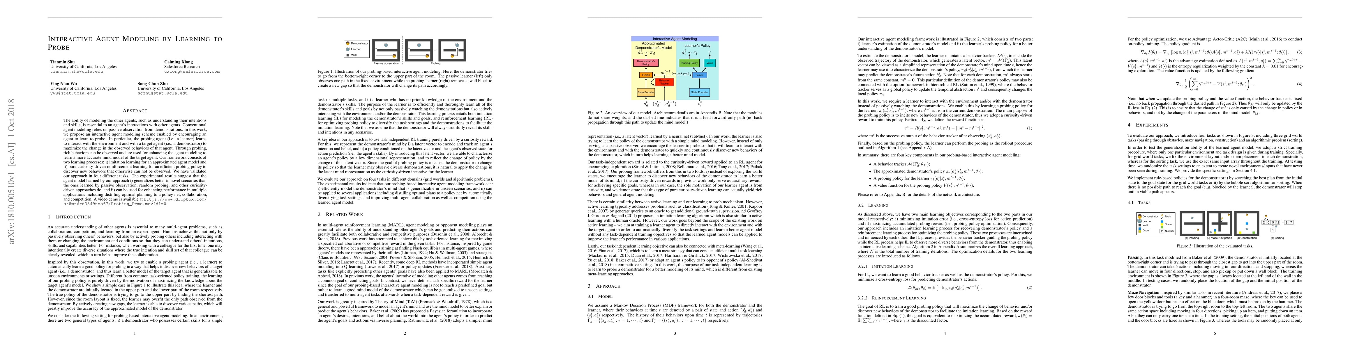 The ability of modeling the other agents, such as understanding their intentions and skills, is essential to an agent's interactions with other agents. Conventional agent modeling relies on passive observation from demonstrations. In this work, we propose an interactive agent modeling scheme enabled by encouraging an agent to learn to probe. In particular, the probing agent (i.e. a learner) learns to interact with the environment and with a target agent (i.e., a demonstrator) to maximize the change in the observed behaviors of that agent. Through probing, rich behaviors can be observed and are used for enhancing the agent modeling to learn a more accurate mind model of the target agent. Our framework consists of two learning processes: i) imitation learning for an approximated agent model and ii) pure curiosity-driven reinforcement learning for an efficient probing policy to discover new behaviors that otherwise can not be observed. We have validated our approach in four different tasks. The experimental results suggest that the agent model learned by our approach i) generalizes better in novel scenarios than the ones learned by passive observation, random probing, and other curiosity-driven approaches do, and ii) can be used for enhancing performance in multiple applications including distilling optimal planning to a policy net, collaboration, and competition. A video demo is available at https://www.dropbox.com/s/8mz6rd3349tso67/Probing_Demo.mov?dl=0
