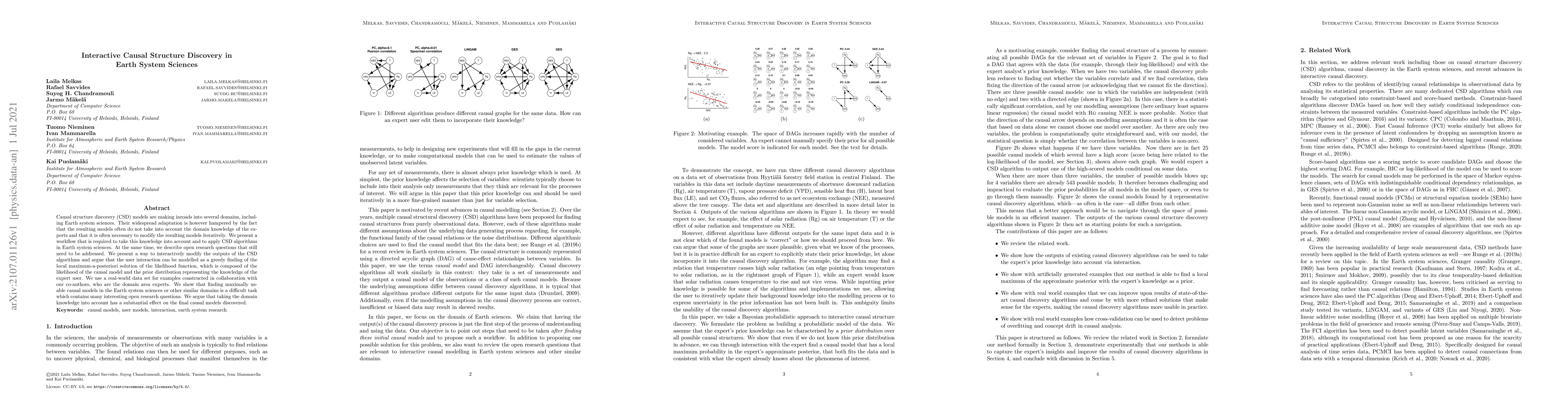 This paper proposes an interactive workflow for causal structure discovery in Earth system sciences that incorporates expert domain knowledge, addressing the iterative modification challenges. It demonstrates the importance of user interaction in finding optimal causal models and highlights significant open research questions in this domain.