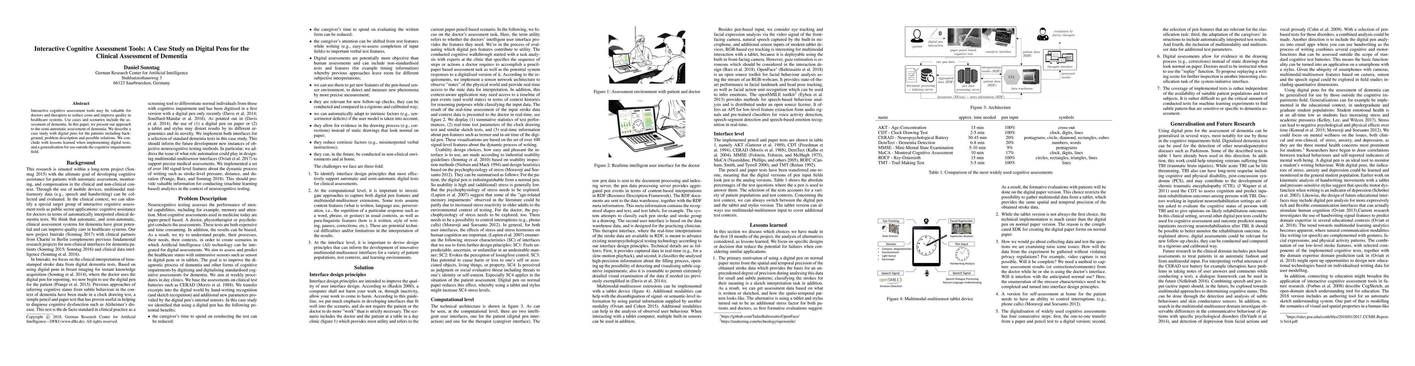 This paper presents a case study using digital pens for semi-automatic dementia assessment, highlighting the potential of interactive cognitive tools in healthcare, and sharing valuable lessons for broader applications beyond cognitive impairments.