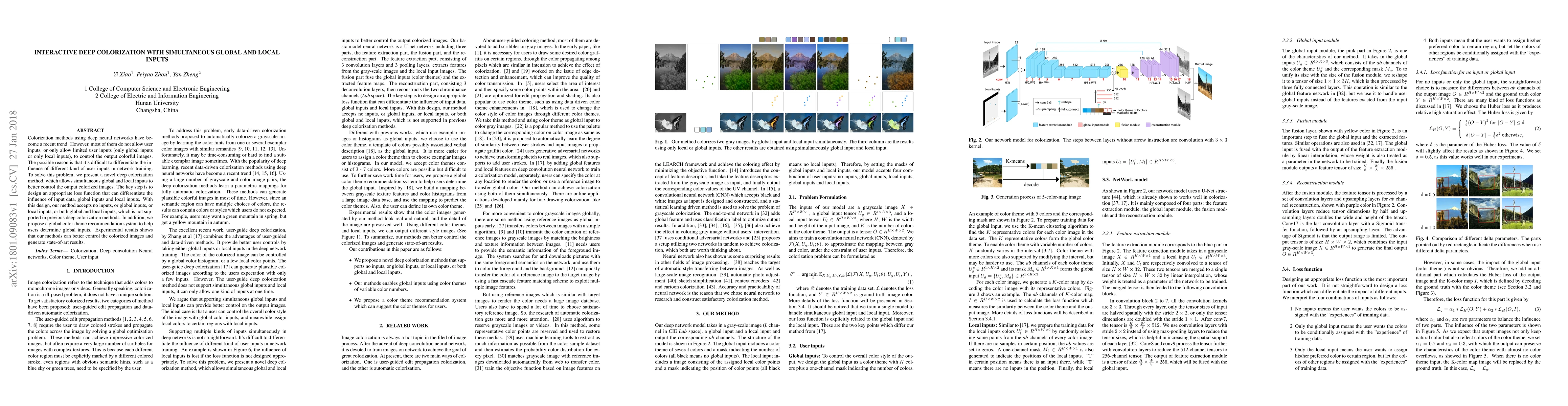 Colorization methods using deep neural networks have become a recent trend. However, most of them do not allow user inputs, or only allow limited user inputs (only global inputs or only local inputs), to control the output colorful images. The possible reason is that it's difficult to differentiate the influence of different kind of user inputs in network training. To solve this problem, we present a novel deep colorization method, which allows simultaneous global and local inputs to better control the output colorized images. The key step is to design an appropriate loss function that can differentiate the influence of input data, global inputs and local inputs. With this design, our method accepts no inputs, or global inputs, or local inputs, or both global and local inputs, which is not supported in previous deep colorization methods. In addition, we propose a global color theme recommendation system to help users determine global inputs. Experimental results shows that our methods can better control the colorized images and generate state-of-art results.