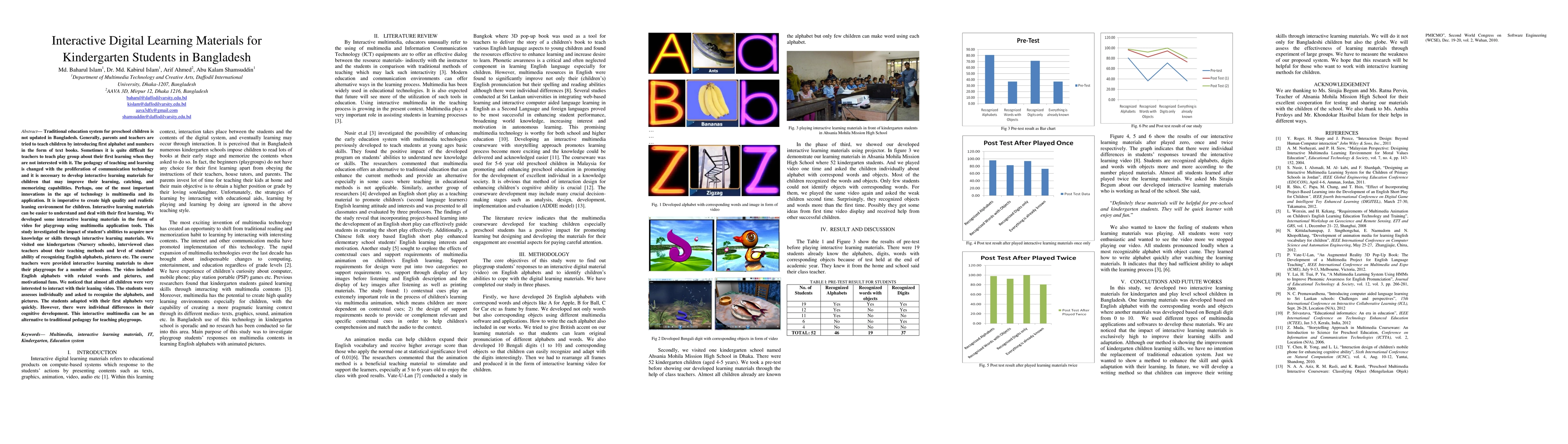 This study developed interactive multimedia learning materials in the form of a video to enhance kindergarten students' learning in Bangladesh. The results showed significant interest and quick adaptation among children, suggesting that interactive multimedia can be an effective alternative to traditional teaching methods.