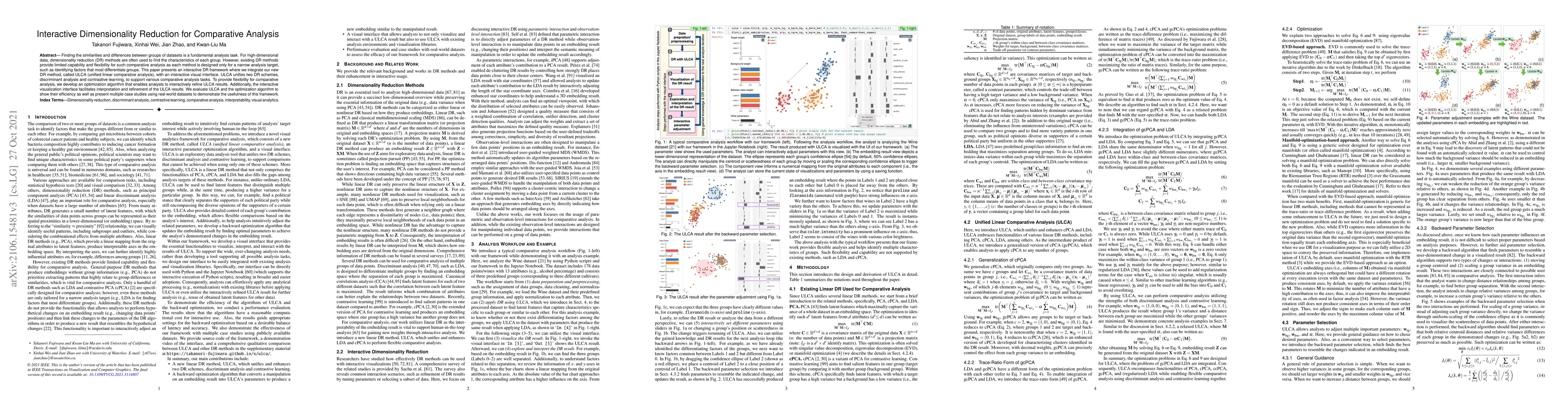 This paper introduces an interactive dimensionality reduction framework called ULCA, which combines discriminant analysis and contrastive learning to support diverse comparative analysis tasks. The framework includes an optimization algorithm and an interactive visual interface to enhance flexibility and interpretability, demonstrated through real-world dataset case studies.