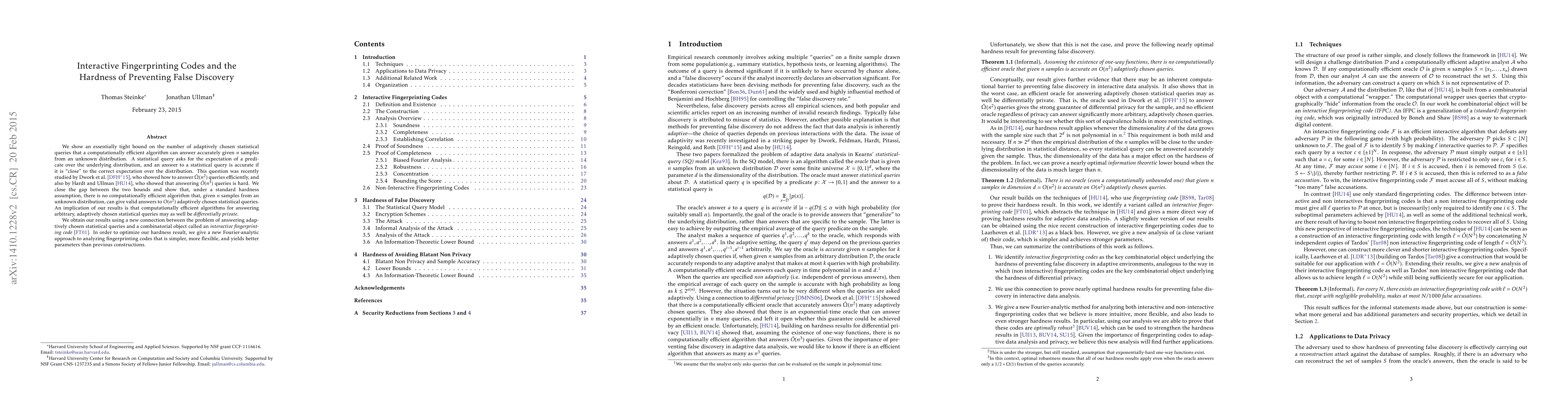 We show an essentially tight bound on the number of adaptively chosen statistical queries that a computationally efficient algorithm can answer accurately given $n$ samples from an unknown distribution. A statistical query asks for the expectation of a predicate over the underlying distribution, and an answer to a statistical query is accurate if it is "close" to the correct expectation over the distribution. This question was recently studied by Dwork et al., who showed how to answer $\tilde{\Omega}(n^2)$ queries efficiently, and also by Hardt and Ullman, who showed that answering $\tilde{O}(n^3)$ queries is hard. We close the gap between the two bounds and show that, under a standard hardness assumption, there is no computationally efficient algorithm that, given $n$ samples from an unknown distribution, can give valid answers to $O(n^2)$ adaptively chosen statistical queries. An implication of our results is that computationally efficient algorithms for answering arbitrary, adaptively chosen statistical queries may as well be differentially private. We obtain our results using a new connection between the problem of answering adaptively chosen statistical queries and a combinatorial object called an interactive fingerprinting code. In order to optimize our hardness result, we give a new Fourier-analytic approach to analyzing fingerprinting codes that is simpler, more flexible, and yields better parameters than previous constructions.