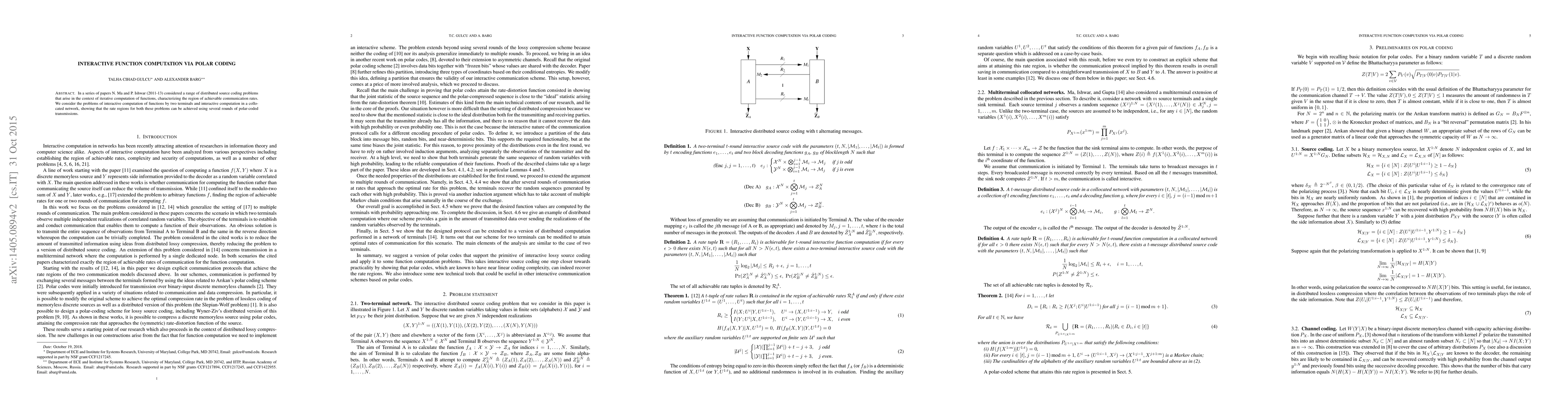 Researchers show that polar coding can achieve rate regions for interactive function computation in two-terminal and collocated networks using multiple rounds of transmission.