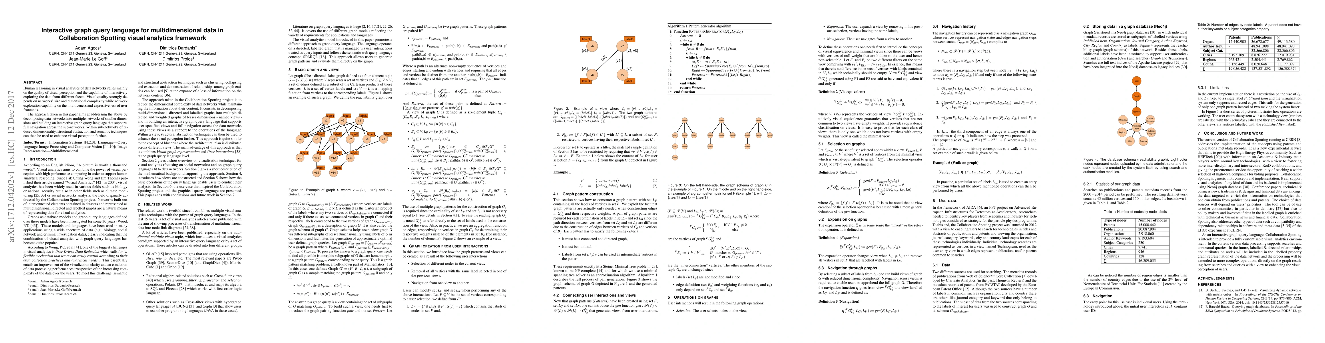 Human reasoning in visual analytics of data networks relies mainly on the quality of visual perception and the capability of interactively exploring the data from different facets. Visual quality strongly depends on networks' size and dimensional complexity while network exploration capability on the intuitiveness and expressiveness of user frontends. The approach taken in this paper aims at addressing the above by decomposing data networks into multiple networks of smaller dimensions and building an interactive graph query language that supports full navigation across the sub-networks. Within sub-networks of reduced dimensionality, structural abstraction and semantic techniques can then be used to enhance visual perception further.